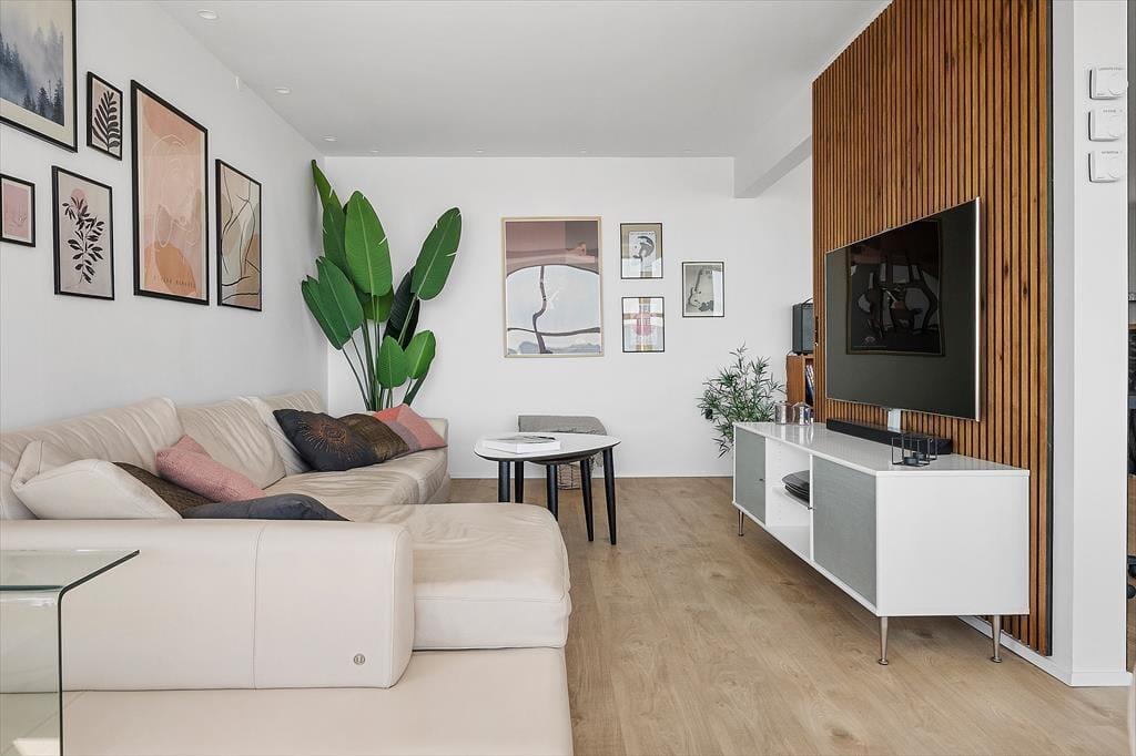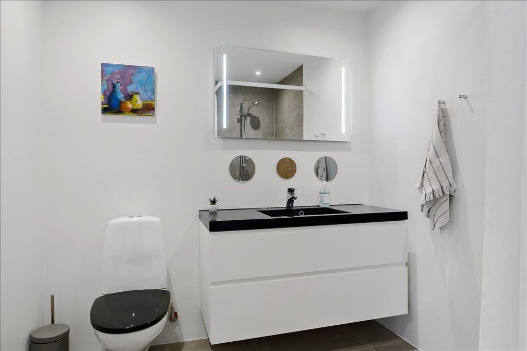 Bei diesem Urlaubsdomizil erwartet Sie eine uneingeschränkte, einfach überwältigende Aussicht auf den Fjord. Da mehrere Schlafzimmer zum Wasser hin ausgerichtet sind, blicken Sie bereits bei erstem morgendlichen Augenaufschlag auf den Fjord. Im Tagesverlauf bildet die atemberaubende Küstenlandschaft eine einmalig schöne Kulisse für Ihre entspannten Stunden im Aufenthaltsbereich. Erwähnenswert ist neben der grandiosen Aussicht auch die richtig tolle, moderne und qualitativ hochwertige Einrichtung des Erdgeschosses und der unteren Etage. Das Erdgeschoss überzeugt besonders mit dem großen Aufenthaltsbereich, der nicht nur aufgrund der Aussicht, sondern auch aufgrund des durchströmenden Tageslichteinfalls und der reizvollen, offenen Kombination aus Küchen-, Ess- und Wohnbereich zu überzeugen weiß. Ein Badezimmer steht für Sie im Erdgeschoss zur Verfügung. Vom Eingangsbereich aus führen ein paar Treppenstufen hinab in einen Schlafraum mit Fjordblick und direktem Zugang zum Garten. Im Untergeschoss gibt es ein weiteres Badezimmer, ein Hauswirtschaftsbereich und ein Aktivitätsraum mit einem Tischkicker. Drei Schlafräume sind hier ebenfalls platziert. Diese sind, genau wie das Schlafzimmer im Erdgeschoss, mit je einem Doppelbett eingerichtet. Drei der Doppelbetten weisen eine Breite von 180 Zentimetern auf. Das vierte Doppelbett ist mit einer Breite von 140 Zentimetern ein wenig schmaler.