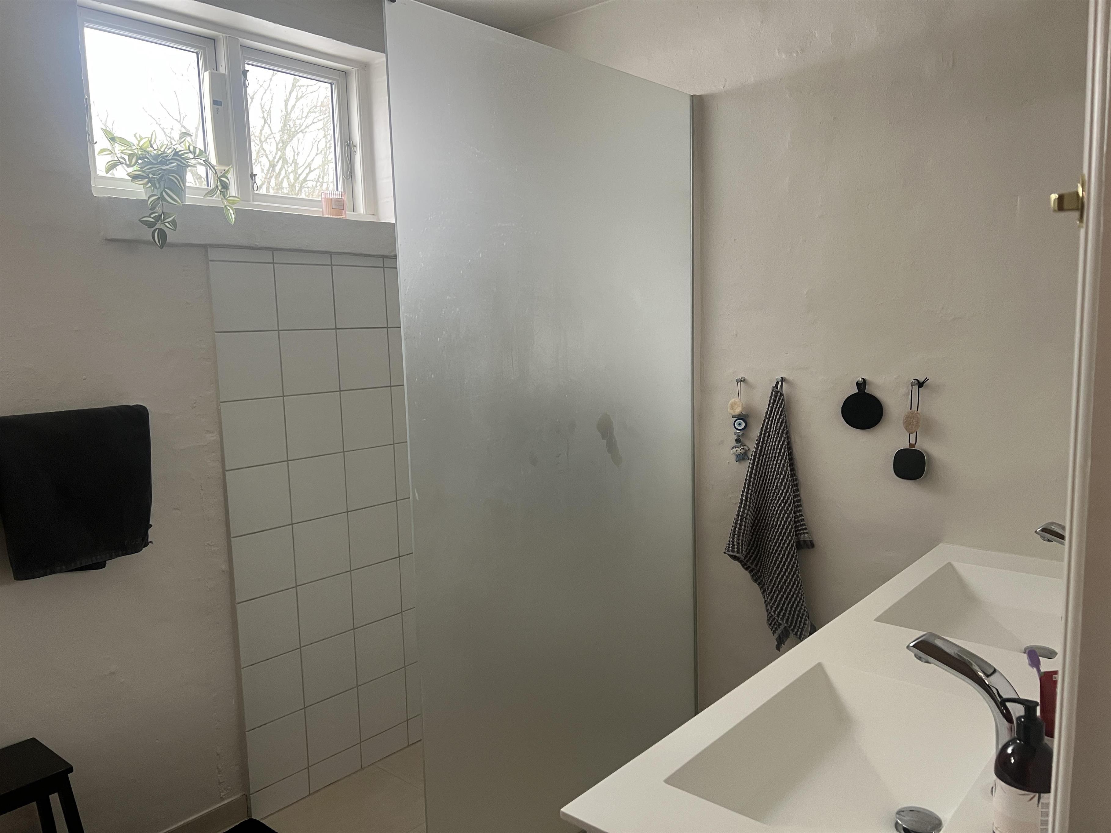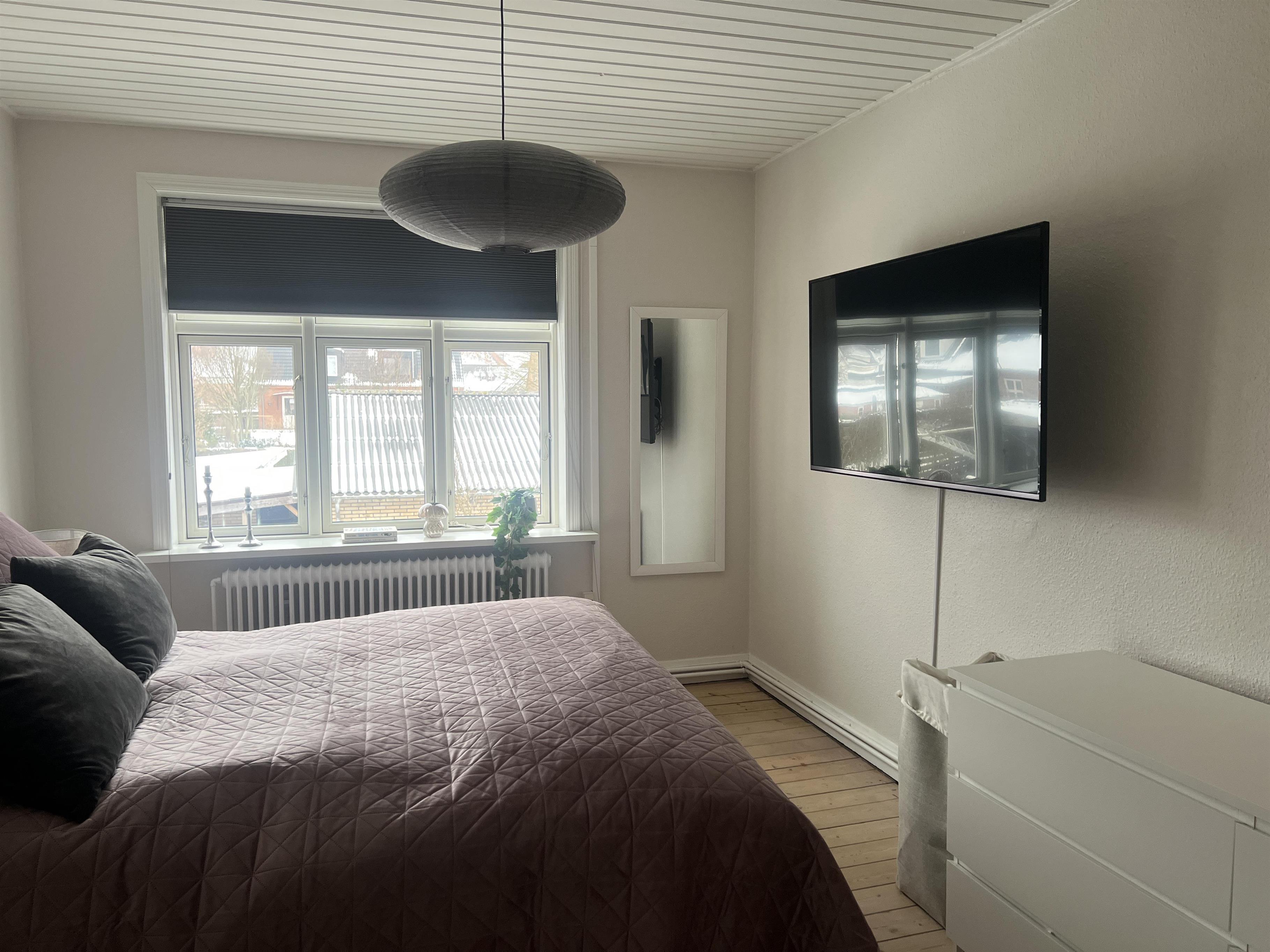 Im Inneren stehen moderne Unterhaltungsmöglichkeiten zur Verfügung. Zwei Fernseher – einer im Wohnzimmer und einer im Schlafzimmer – bieten Zugang zu Netflix, TV2 Play, Prime Video, DR TV, Spotify und weiteren Streamingdiensten. Das Internet verbindet sich automatisch, indem der Code auf dem Router gescannt wird. Das Haus wird mit Fernwärme beheizt; im Erdgeschoss sorgt Fußbodenheizung für ein angenehmes Raumklima zu jeder Jahreszeit.