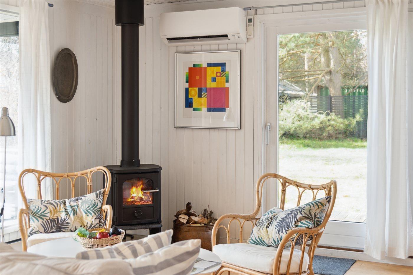 Das Haus verfügt über einen gemütlichen Küchen- und Wohnbereich in offener Verbindung, und Zugang zur überdachten Terrasse sowie zum restlichen Terrassenbereich und Garten bietet. Das Haus verfügt über 3 Schlafzimmer mit einem Doppelbett im einen und Einzelbetten in den anderen beiden Zimmern. Darüber hinaus gibt es ein Gästehaus mit 2 Einzelbetten. Das Haus bietet Platz für 6 Gäste von Woche 19 bis Woche 43. Den Rest des Jahres ist das Gästehaus nicht in der Vermietung enthalten, und das Haus bietet daher Platz für 4 Gäste. Das Badezimmer verfügt über eine Duschkabine und Fußbodenheizung. Das Grundstück ist eingezäunt, sodass Kinder und Haustiere sicher spielen können. Es gibt Glasfaser-Internet, eine Luft-Luft-Wärmepumpe und einen Holzofen.