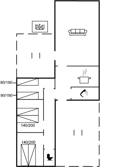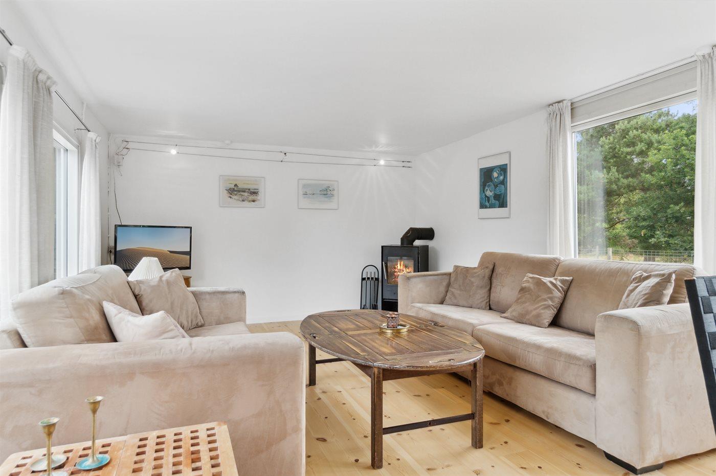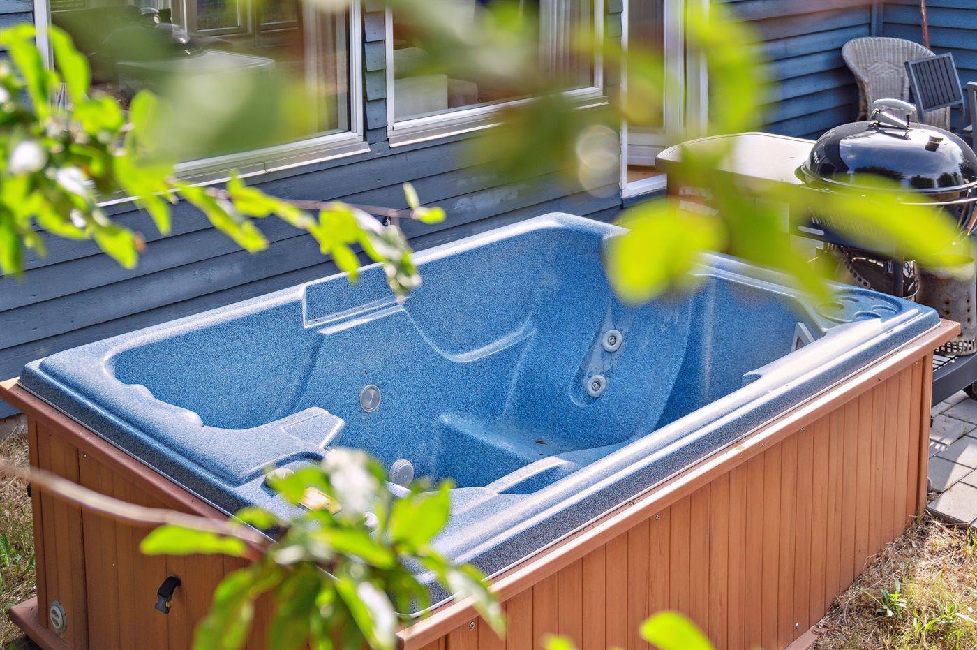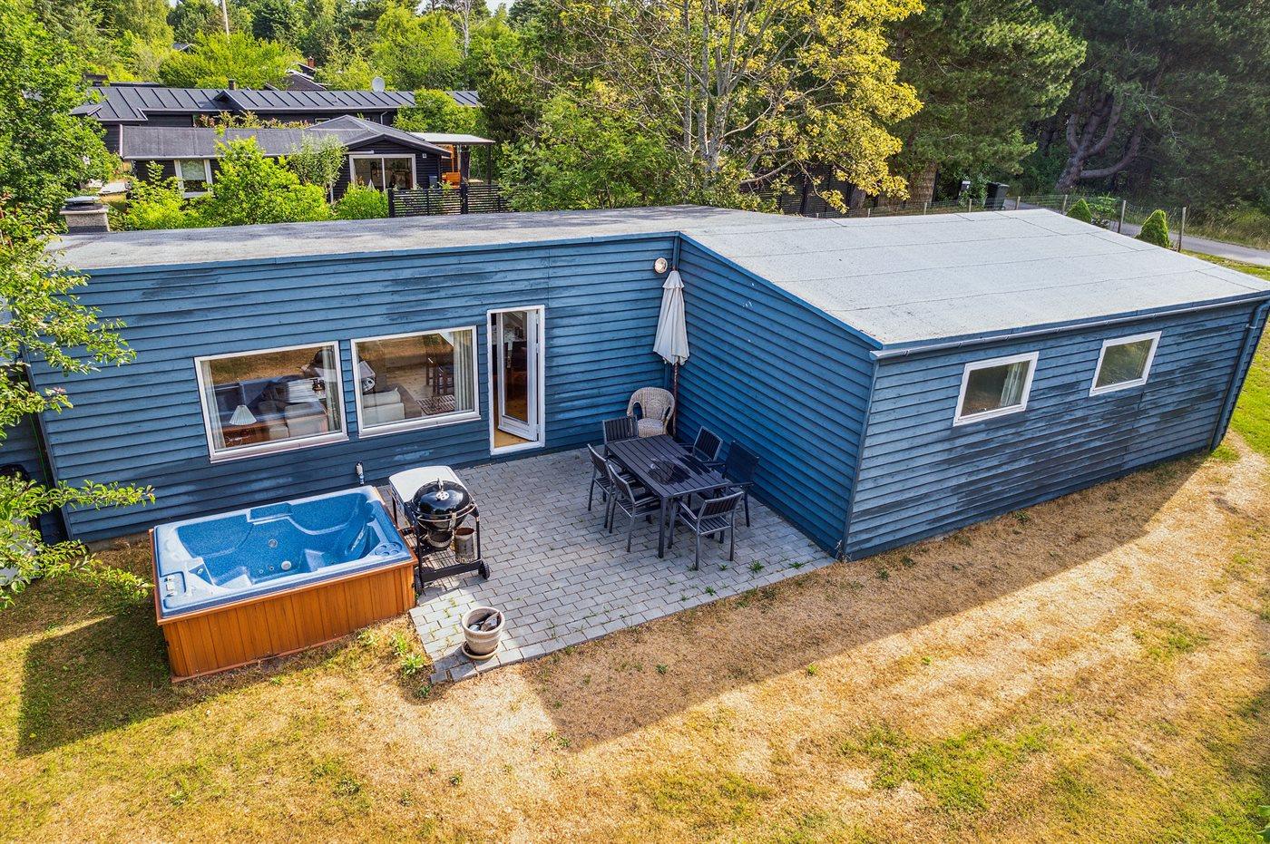 Dieses Ferienhaus aus Holz liegt auf einem Naturgrundstück - nur wenige Minuten Gang vom schönen Sandstrand entfernt. Vom Wohnzimmer gibt es Zutritt zur Terrasse und zu einem Outdoor-Whirlpool für 2 Personen. Der Whirlpool steht im Zeitraum von der 13 bis zur 42 KW zur Verfügung.