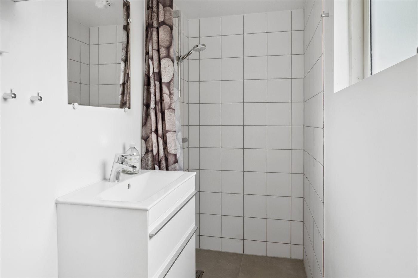 Es gibt 1 Badezimmer mit Dusche und 1 Toilette..