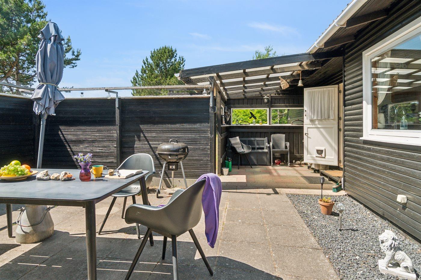Die Ferienunterkunft liegt auf einem 1268 m² großen Gartengrundstück. Die Entfernung zum Meer beträgt 350 m. Die nächste Einkaufsmöglichkeit liegt 2900 m entfernt. In einem Abstand von 7850 m gibt es einen Golfplatz. Es stehen 30 m² offene sowie 8 m² überdachte Terrasse zur Verfügung. Davon sind insgesamt 30 m² geschlossen. Schaukel.Lagerfeuerstelle. Es steht ein Grill zur Verfügung. Parkplatz auf dem Grundstück.
