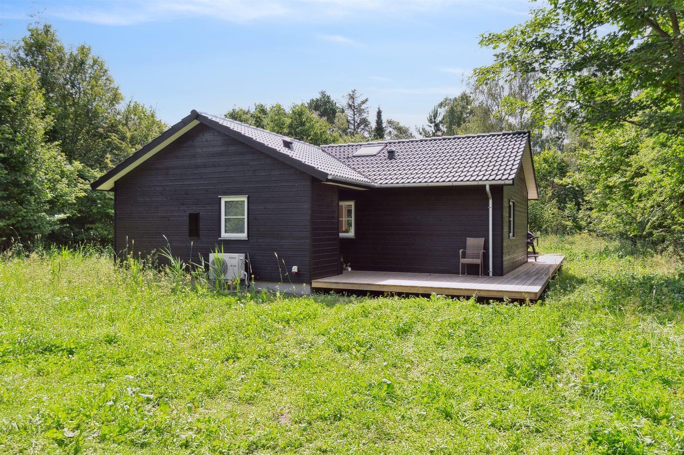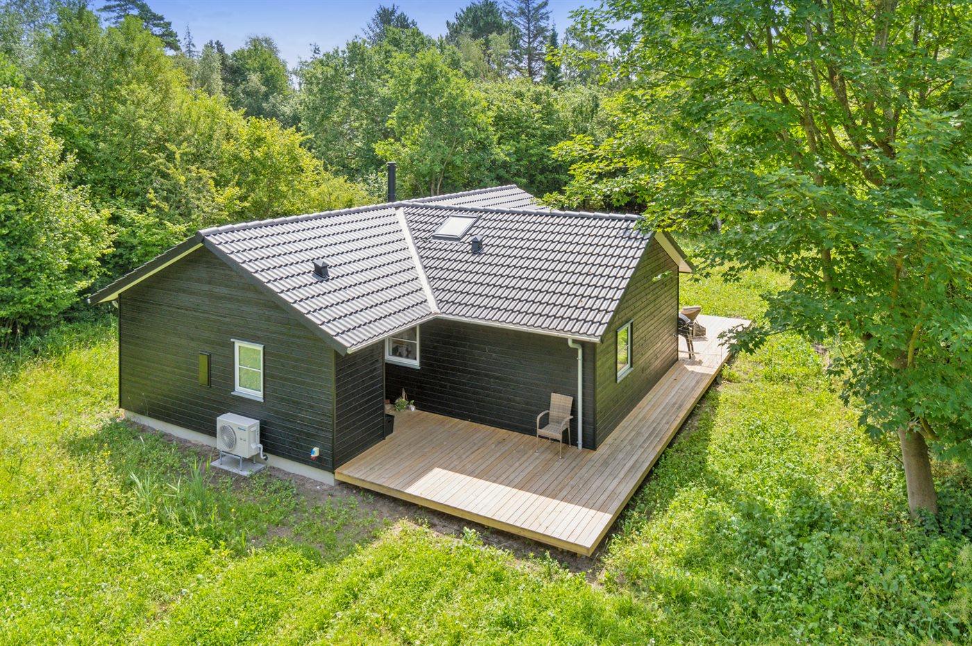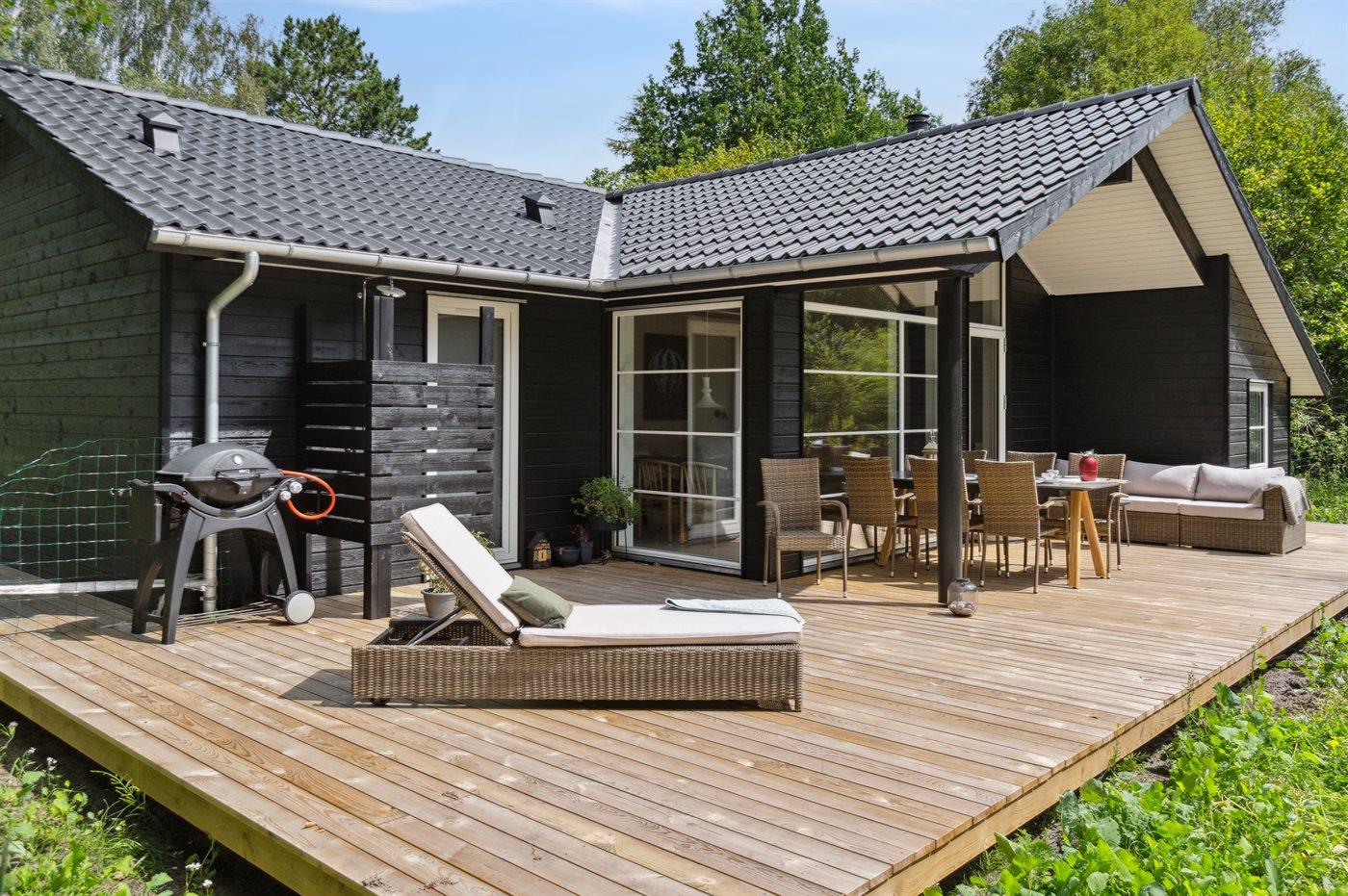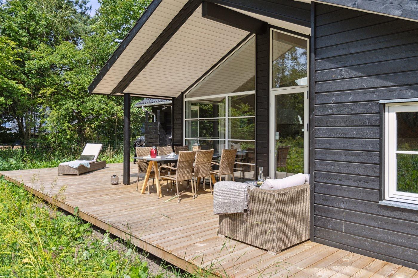 Modernes Ferienhaus nahe Strand mit großer Terrasse und energieeffizientem Design.