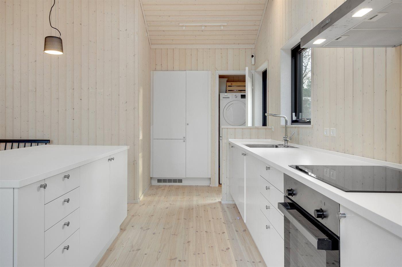 Die Küche ist mit Kühlschrank ausgestattet. Außerdem gibt es 4 Induktions-Kochzonen, Umluftofen sowie Geschirrspüler.