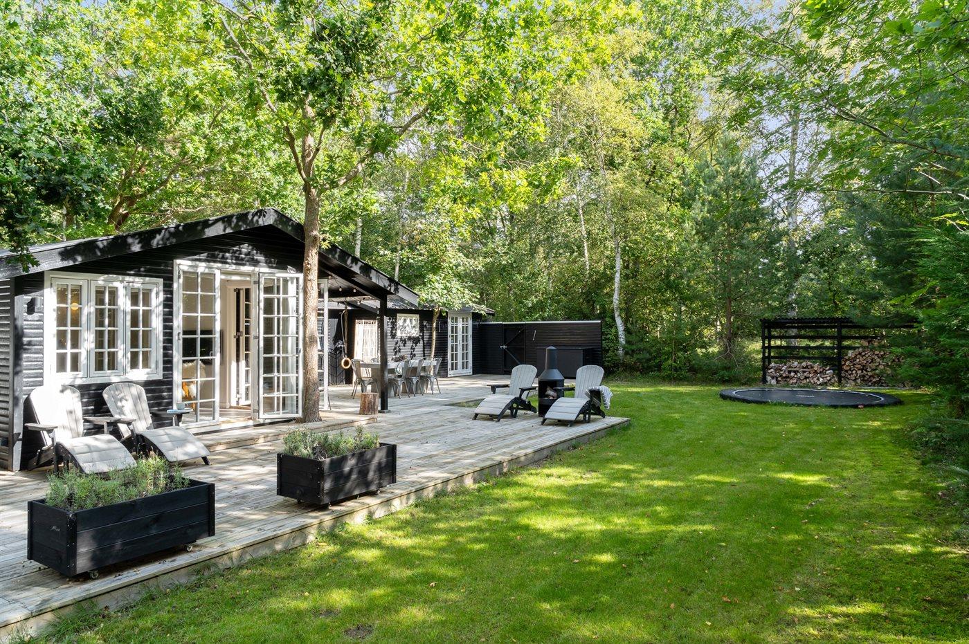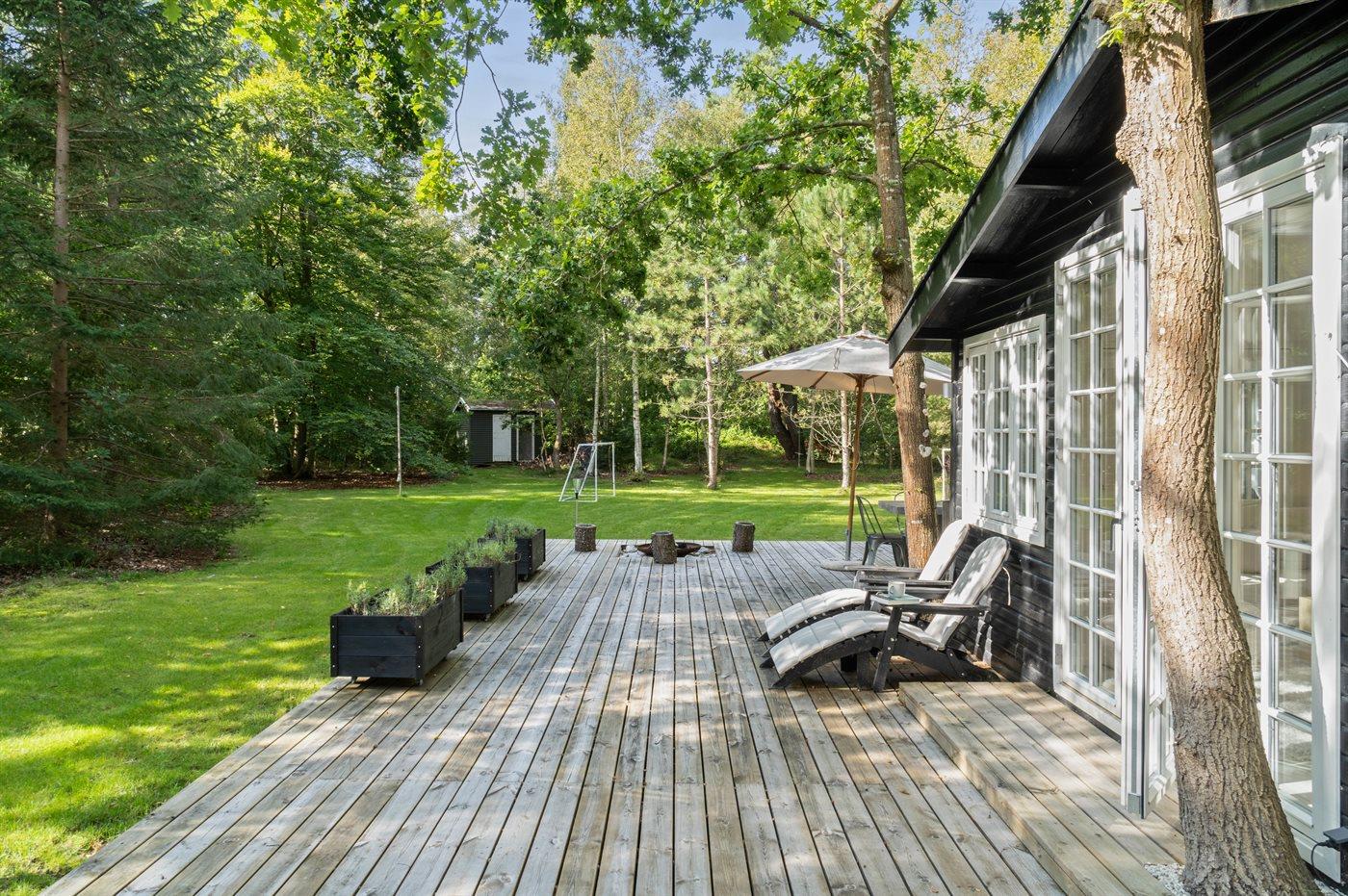 Die Ferienunterkunft liegt auf einem 2664 m² großen Gartengrundstück. Die Entfernung zum Meer beträgt 750 m. Die nächste Einkaufsmöglichkeit liegt 575 m entfernt. In einem Abstand von 7200 m gibt es einen Golfplatz. Es steht ein 150 m² Terrassenareal zur Verfügung. Außerdem gibt es 4 m² überdachte Terrasse. Trampolin. Fußballtor.Lagerfeuerstelle. Außendusche. Es steht ein Grill zur Verfügung. Parkplatz auf dem Grundstück.