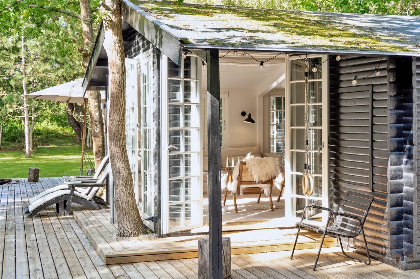 Das Haus wurde im Jahr 2021 völlig renoviert und präsentiert sich äußerst charmant mit schwarzen Fassaden und weißen Sprossenfenstern. Auf der gesamten Südseite des Hauses befindet sich eine große Terrassenfläche mit einer Außendusche, die zum Entspannen und gemütlichen Beisammensein mit Familie und Freunden einlädt. Das Haus ist modern und sommerlich eingerichtet mit einer offenen Küche, einem Wohnzimmer und einem Essbereich. Es gibt drei gute Schlafzimmer, von denen zwei direkten Zugang zur Terrasse haben. Das neue Badezimmer verfügt über Fußbodenheizung und eine Duschkabine. Das Haus steht auf einem doppelten Grundstück von insgesamt 2664 Quadratmetern und ist von hohen Bäumen umgeben, die zur südländischen Atmosphäre beitragen.