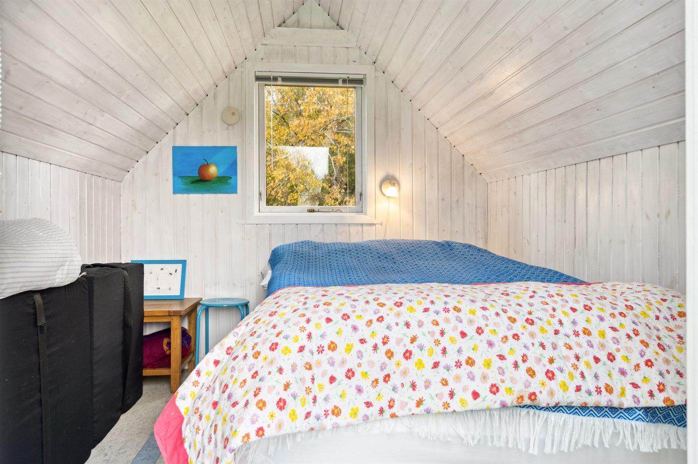 Dieses gemütliche Ferienhaus liegt auf einem großen Naturgrundstück, nur 750 Meter von einem Strand, wo in den Sommermonaten ein Badesteg zur Verfügung steht, entfernt. Das Ferienhaus besteht aus einem modernen und hellen Hauptgebäude mit Küche, Wohn- und Essbereich in einem, sowie einem Badezimmer mit Duschnische, Fußbodenheizung und Waschmaschine.