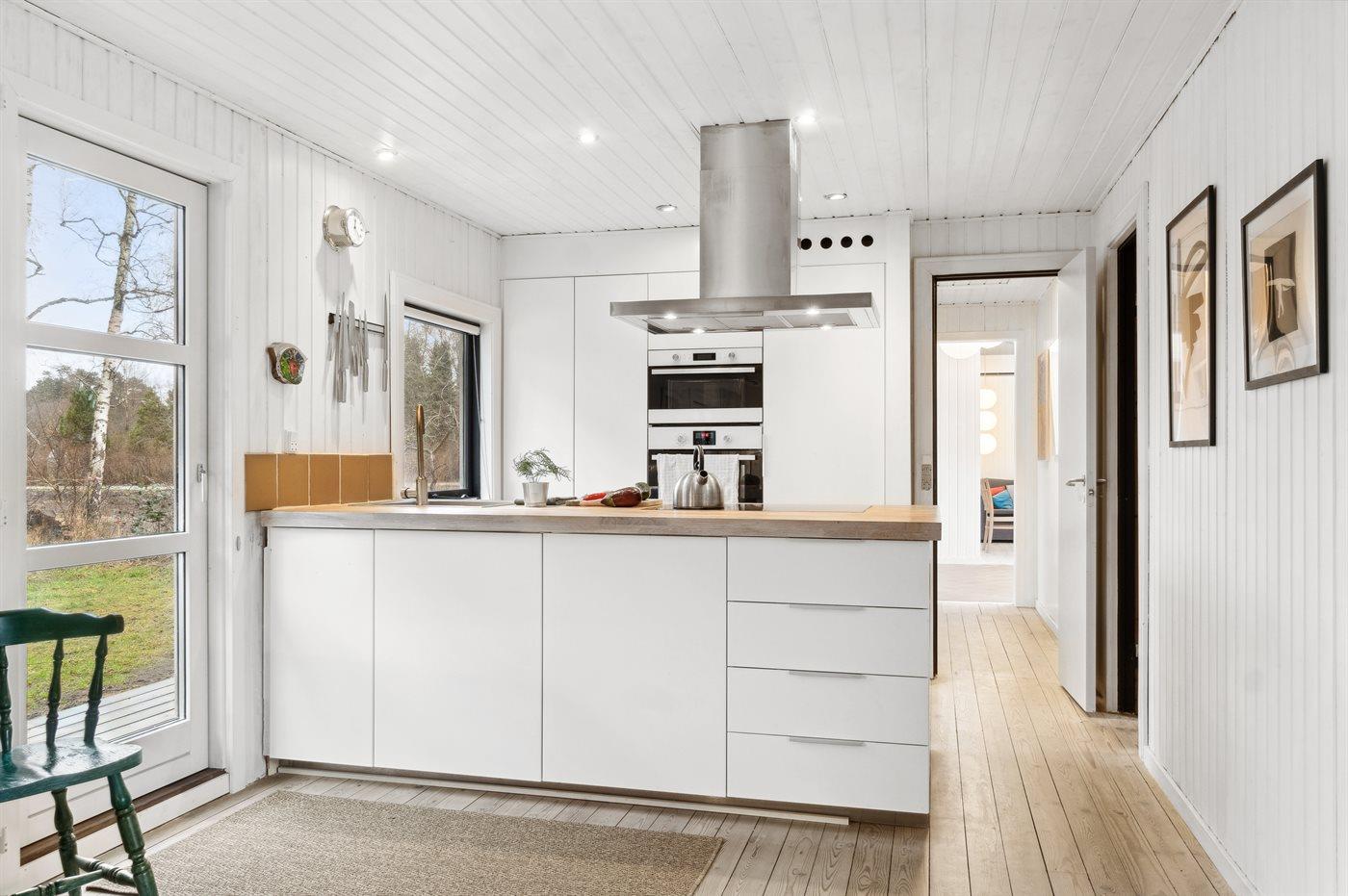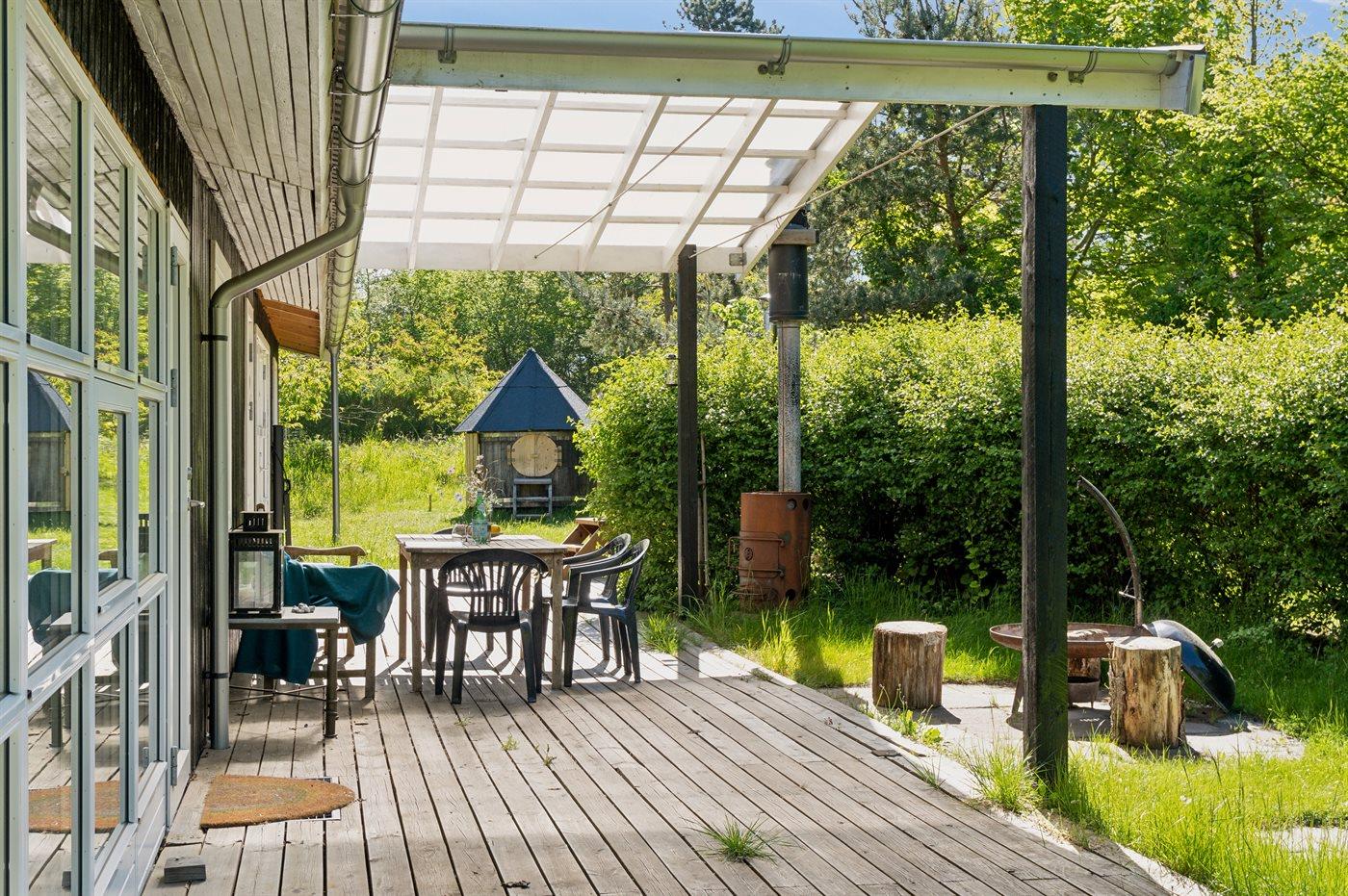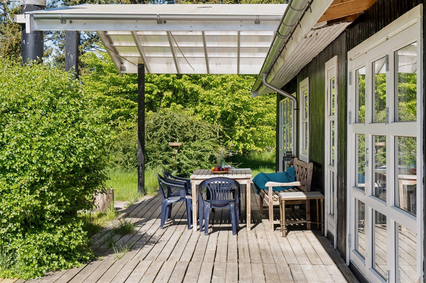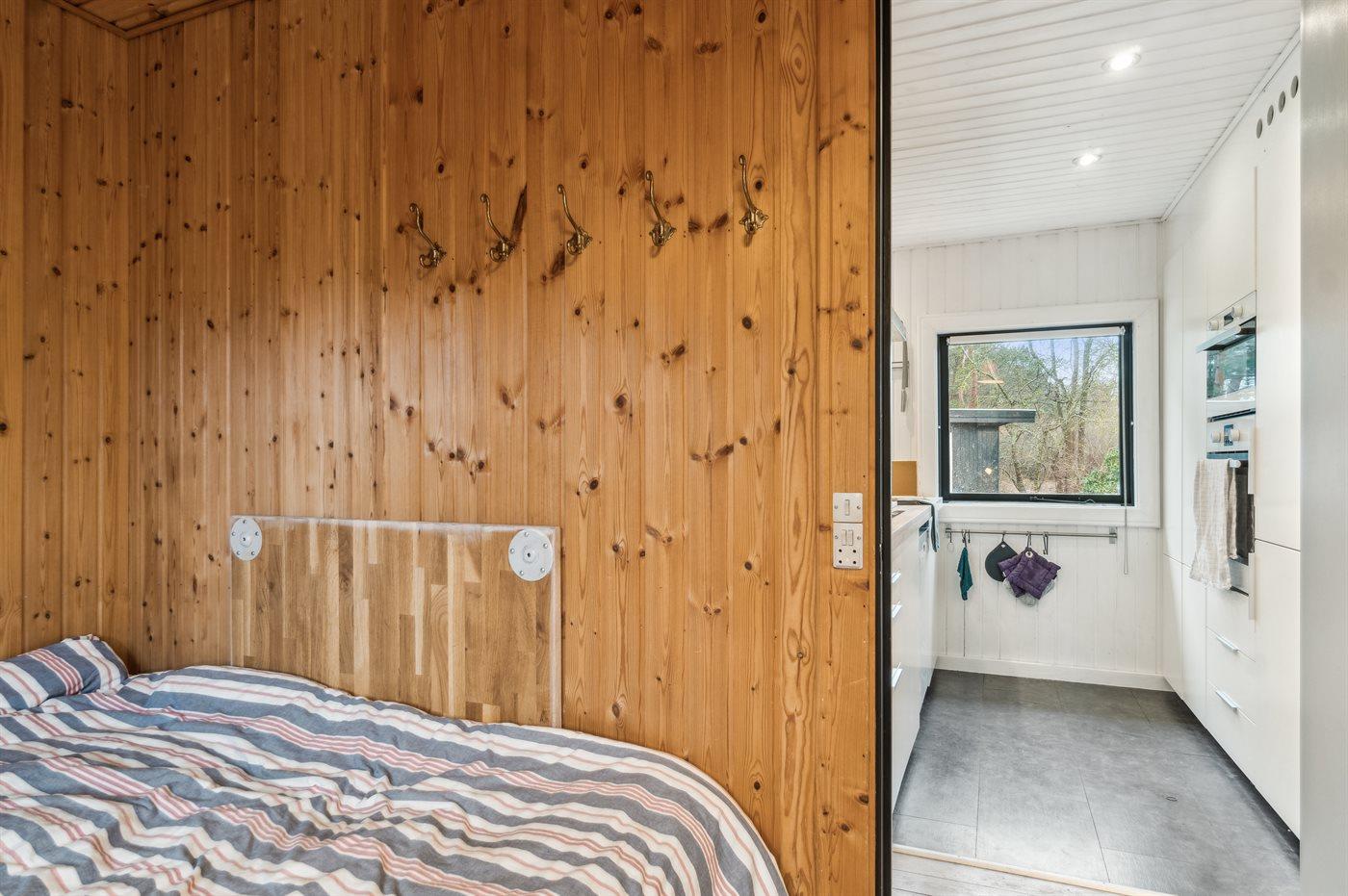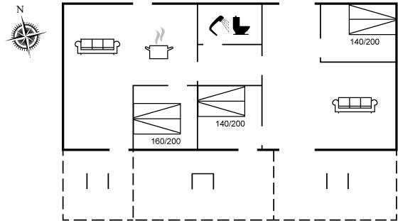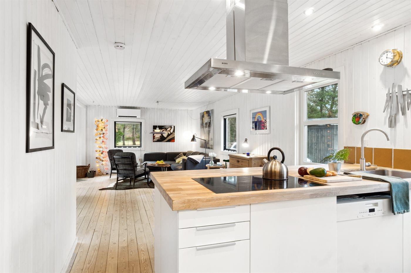 Der Mittelpunkt des Hauses ist der offene Küchen- und Essbereich, der mit dem Wohnzimmer verbunden ist und von dem aus man Zugang zur teilweise überdachten Terrassenfläche hat. Am gegenüberliegenden Ende des Hauses befindet sich ein Anbau aus dem Jahr 2020, der mit einem Aufenthaltsraum mit Sofaecke und zwei Schlafzimmern eingerichtet ist. Insgesamt gibt es 3 Schlafzimmer, die alle mit einem Doppelbett ausgetattet sind. Es gibt ein Badezimmer mit Duschnische. Als zusätzliche Ausstattung ist eine Waschmaschine zu erwähnen.