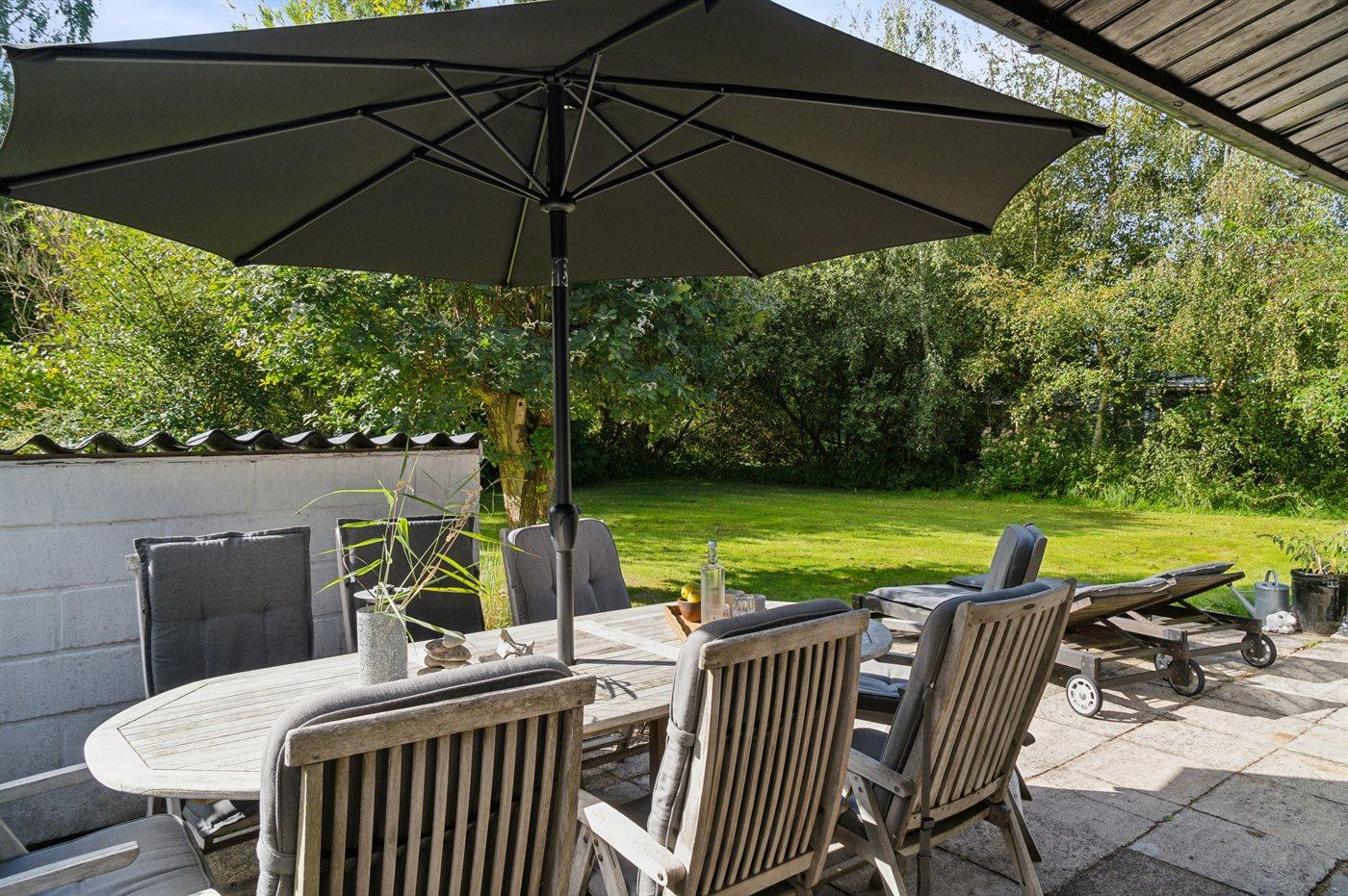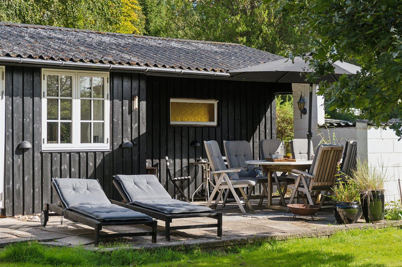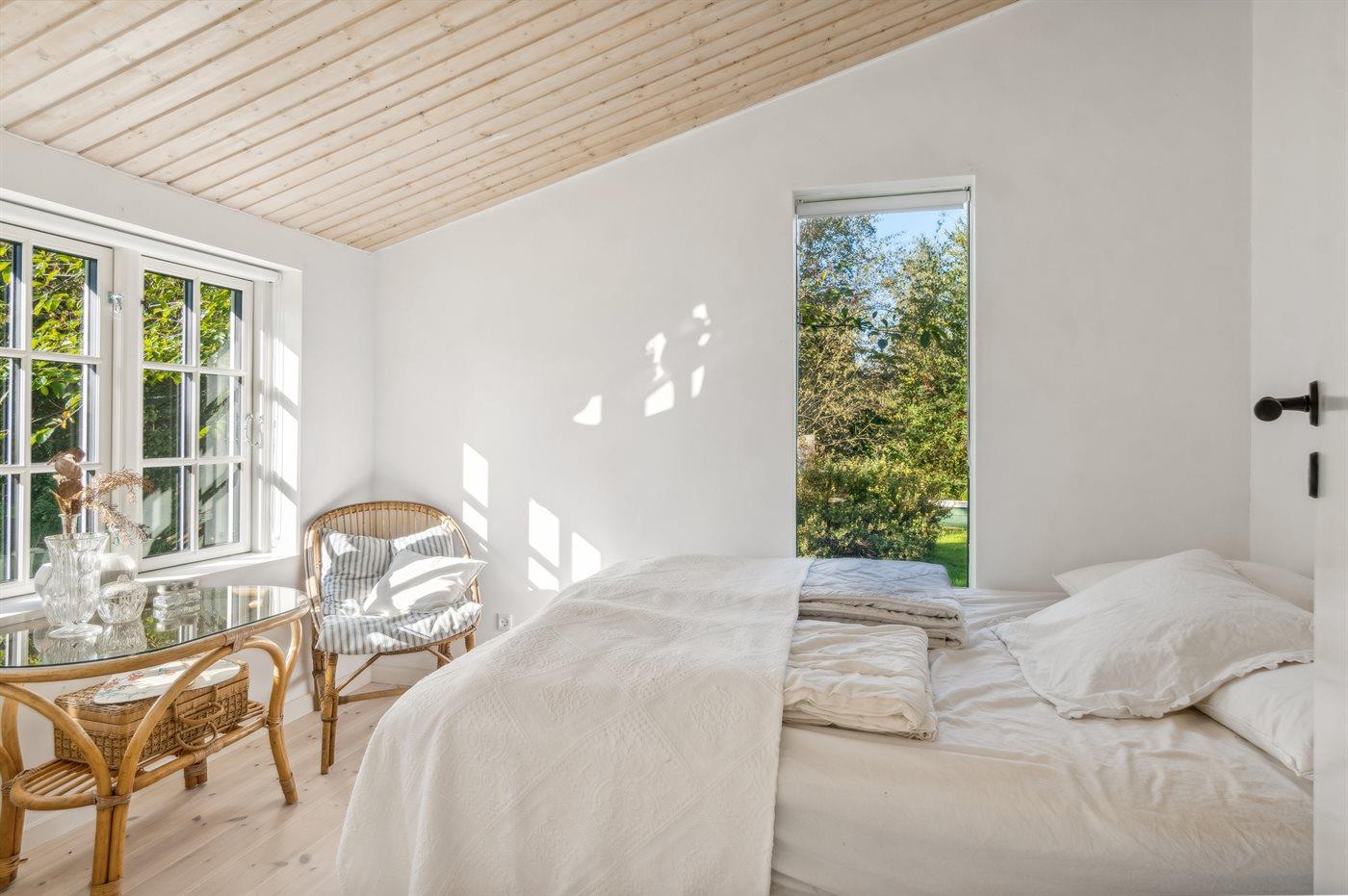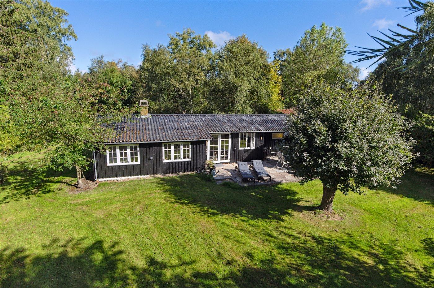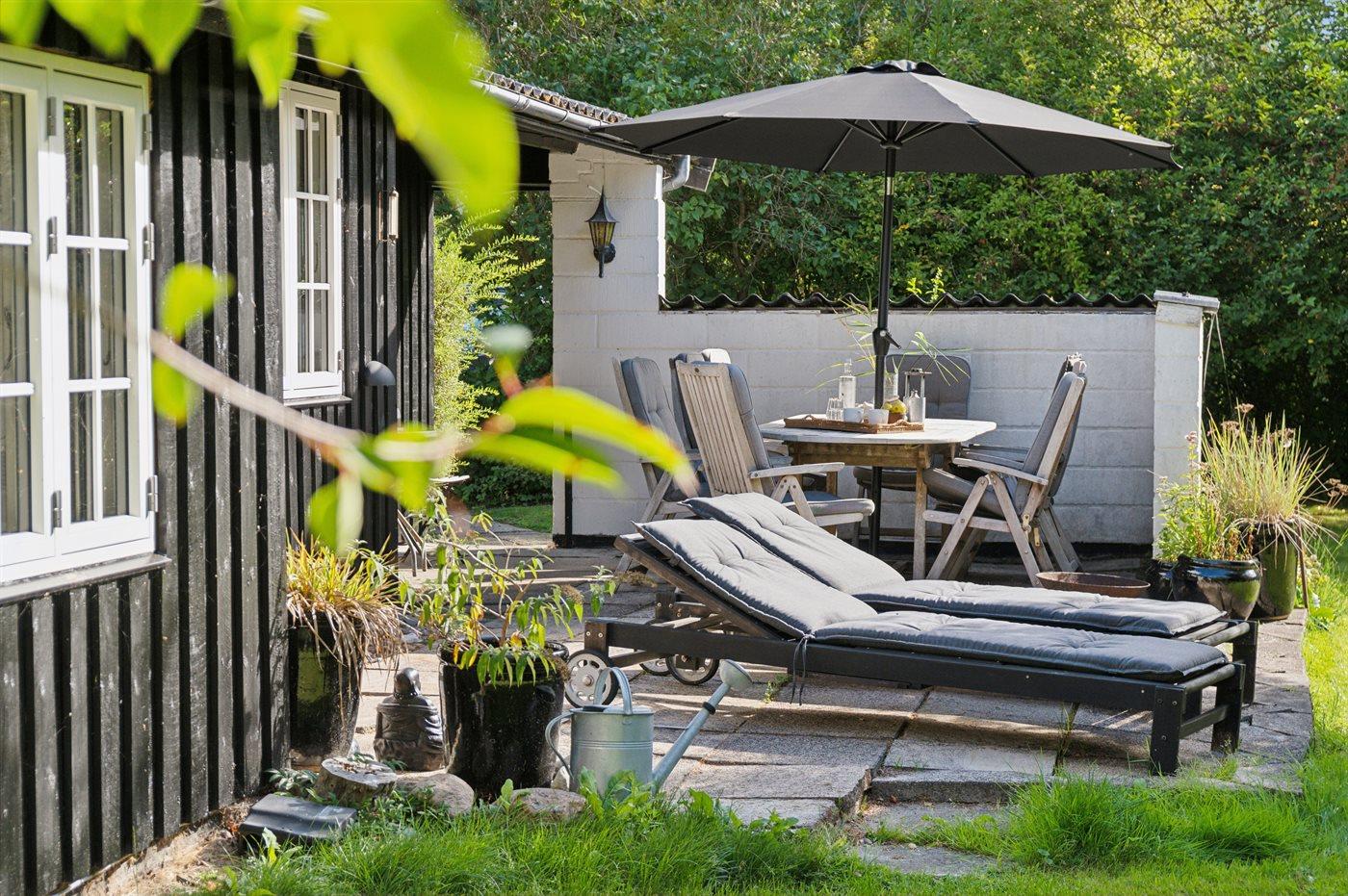 Der moderne Küchenbereich ist offen mit dem Wohnzimmer verbunden und hat einen Ausgang zur nach Süden ausgerichteten Terrasse, was gute Möglichkeiten bietet, zusammenzusein und es sich gemütlich zu machen. Überall im Haus ist es hell und geschmackvoll eingerichtet, mit viel Liebe zum Detail. Es gibt 4 Schlafzimmer, jedes mit 2 Schlafplätzen, sowie ein schönes Badezimmer mit Dusche. Auf dem großen Grundstück gibt es reichlich Gelegenheit zum Spielen, für Ballspiele, zum Entspannen am Lagerfeuerplatz und auf den guten Terrassen auf beiden Seiten des Hauses, von denen ein Teil auch überdacht ist, um den Sommer und das gute Wetter zu genießen. Es gibt auch einen guten Wintergarten, der die Abende im Freien verlängert und an Tagen, an denen es windig und kühl ist, ein großer Vorteil ist. Es gibt auch eine Außendusche.