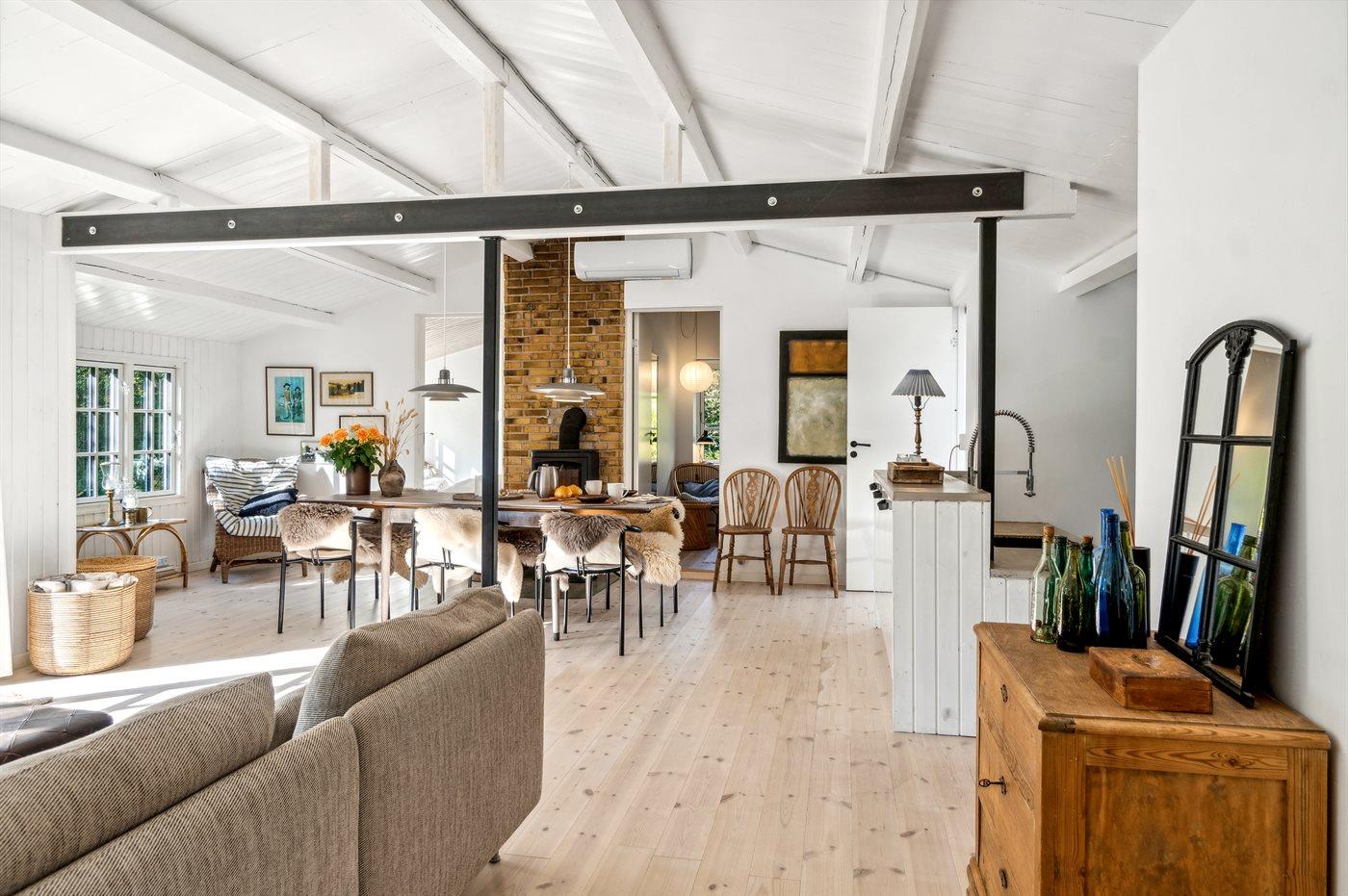 Das Haus liegt sehr zentral zwischen Nykøbing Sj. und Rørvig, wo es an beiden Orten jede Menge Sommerstimmung und ein reges Leben mit Cafés, Restaurants, Geschäften und Einkaufsmöglichkeiten sowie Hafenatmosphäre in den Jachthäfen gibt. Die nächste Einkaufsmöglichkeit liegt nur 1300 Meter entfernt. In der Nähe gibt es auch einen Street Food Markt und Minigolf. In der Umgebung befinden sich einige von Dänemarks besten und kinderfreundlichsten Sandstränden, ebenso wie viel herrliche Natur, darunter das Vogel- und Wildreservat Hov Vig, das in der Nähe des Hauses liegt. Besuche auch Dybesø, Korshage und Skansehage. Vom gemütlichen Rørvig aus besteht auch die Möglichkeit, die Fähre nach Hundested zu nehmen. Für Kinder sind der Vergnügungspark Sommerland Sjælland und der Tierpark Odsherred Zoo Rescue ideale Ausflugsziele. In der Nähe liegt auch der Anneberg Kulturpark mit einer Vielzahl von kulturellen Angeboten. Vom Haus aus sind es nur 1 Stunde und 20 Minuten Fahrt nach Kopenhagen, wo du die vielen Sehenswürdigkeiten und Attraktionen der Hauptstadt erleben kannst.
