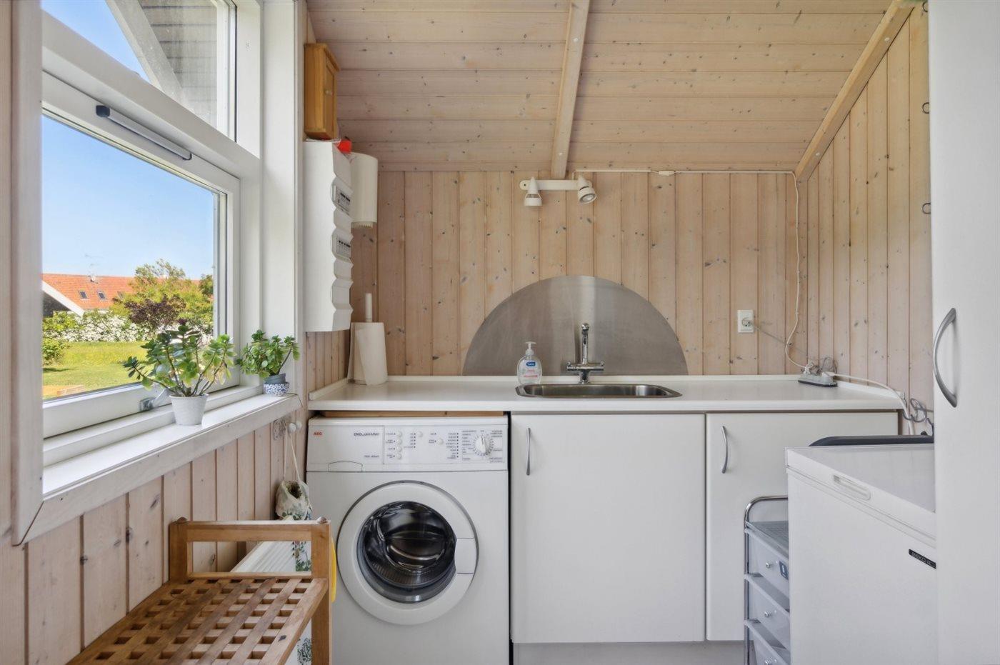 Das Haus verfügt über 3 Schlafzimmer. Im größten Schlafzimmer gibt es ein Doppelbett, im zweiten zwei Einzelbetten. Im dritten Schlafzimmer befindet sich ein Etagenbett (70x190 cm) und ein Einzelbett. Badezimmer mit Duschnische und Fußbodenheizung. Im praktischen Hauswirtschaftsraum stehen eine Waschmaschine und ein Gefrierschrank zur Verfügung.