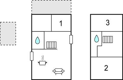 Badezimmer (nr. 1) - WC. Warmes und kaltes Wasser. Dusche