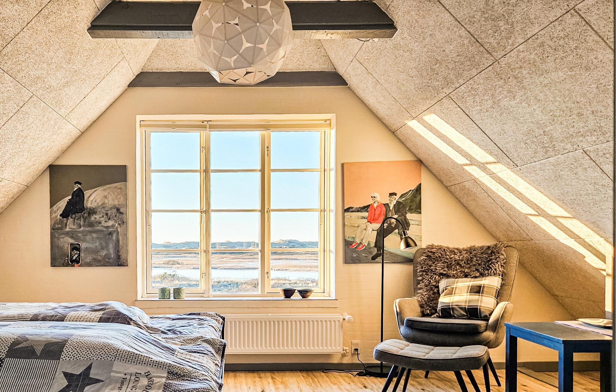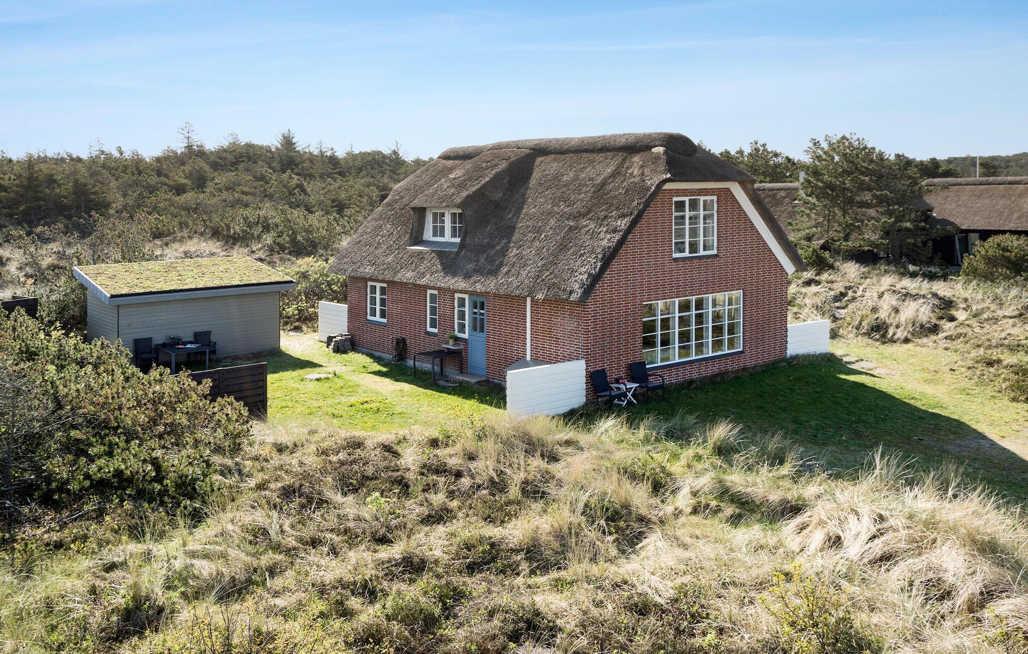 Das charmante Reetdachhaus, idyllisch in den Dünen gelegen, lädt Sie ein, eine Auszeit vom Alltag zu nehmen und die Schönheit der dänischen Westküste zu genießen. Betreten Sie das gemütliche Wohnzimmer mit der liebevollen Ausschmückung und genießen Sie die warme, einladende Atmosphäre. Die großen Fenster bieten tagsüber am Esstisch eine einzigartige Aussicht, abends können Sie den besonders schönen Abendhimmel über dem Nymindestrømmen erleben. Machen Sie es sich auf den bequemen Sesseln oder dem Sofa gemütlich und erfreuen Sie sich an der Aussicht. Die praktische Küche steht Ihnen zur Verfügung, um köstliche Mahlzeiten zuzubereiten. Der angrenzende Essbereich mit Panoramafenstern bietet einen wunderbaren Platz, um gemeinsam Ihre Mahlzeiten zu genießen und dabei den Blick über die Dünen schweifen zu lassen.
