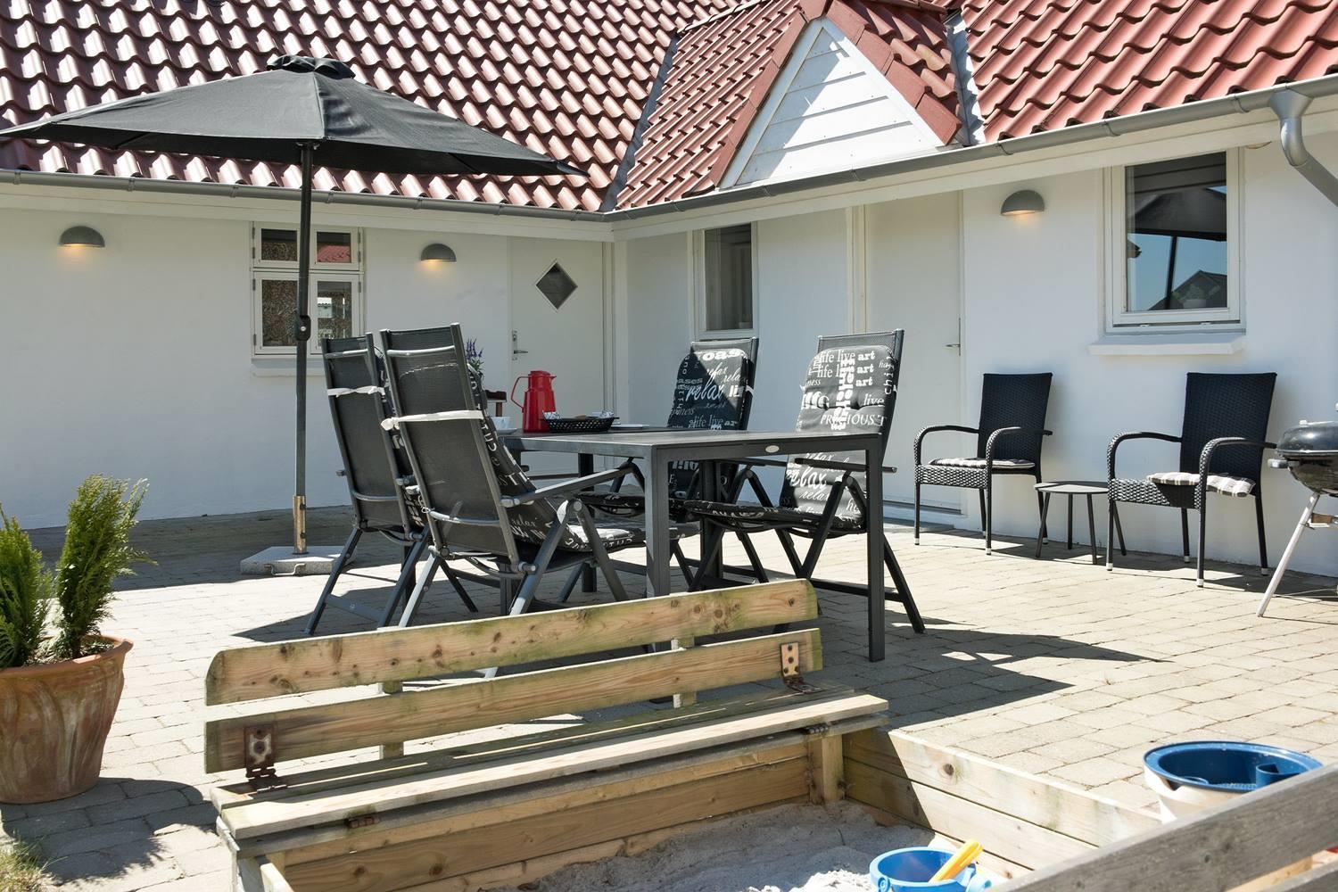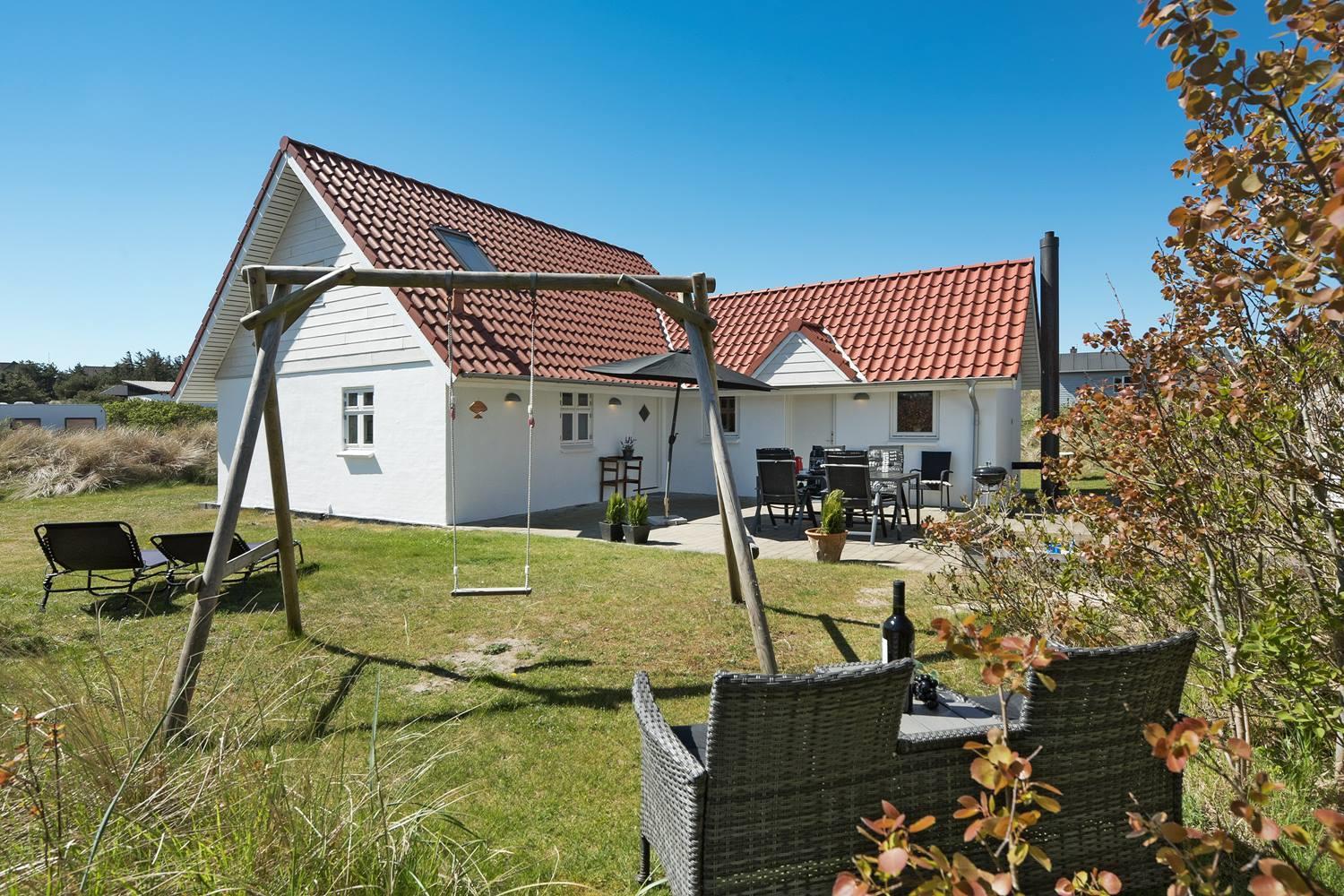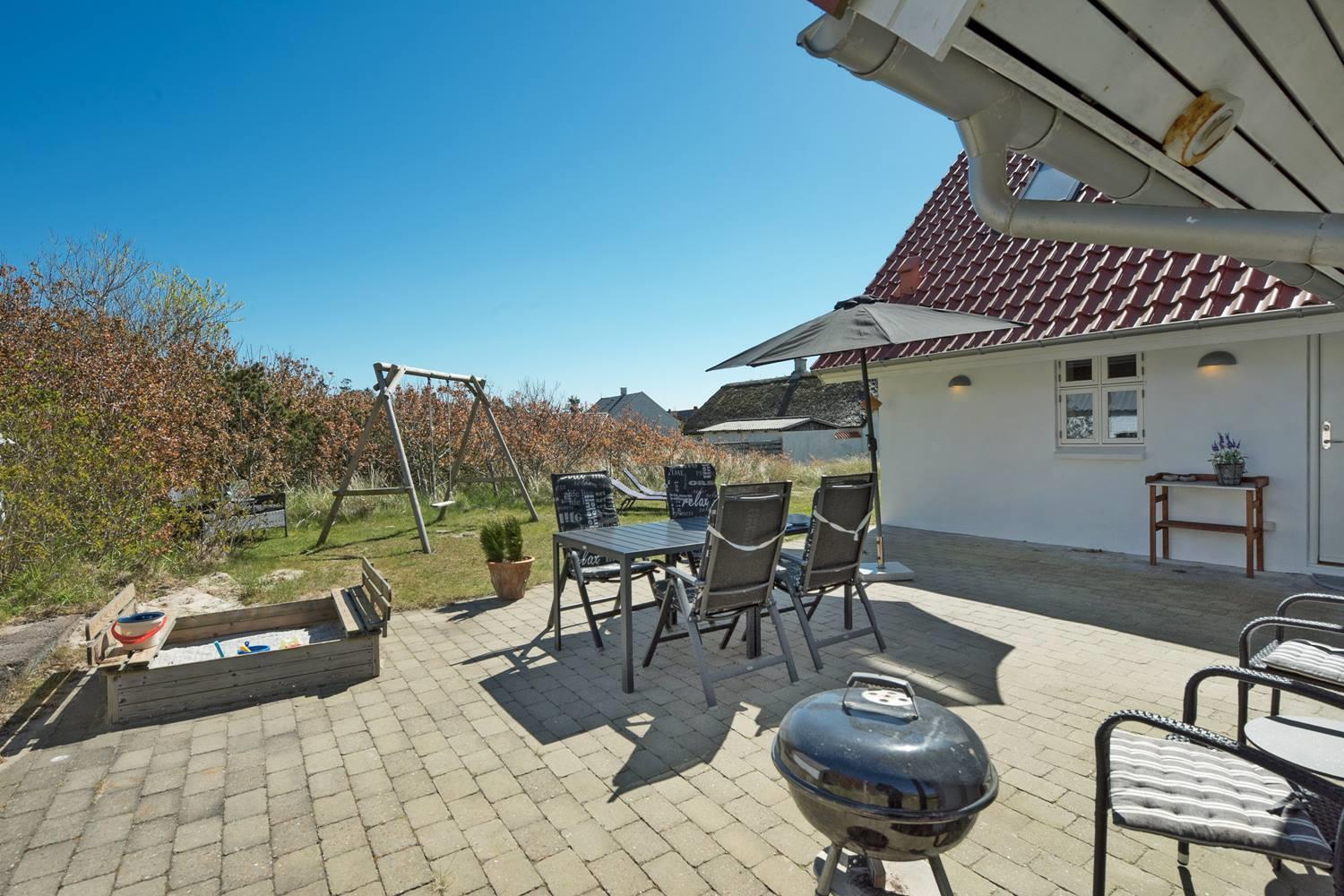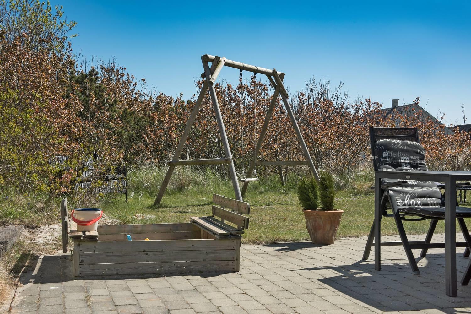 Das großzügige Naturgrundstück rund um das Ferienhaus bietet ideale Bedingungen, um die frische Luft und die Ruhe Westjütlands zu genießen. Ob auf der sonnigen Terrasse beim Frühstück, beim Grillen an einem lauen Sommerabend oder beim Spielen im Sandkasten – hier kommen große und kleine Gäste gleichermaßen auf ihre Kosten.