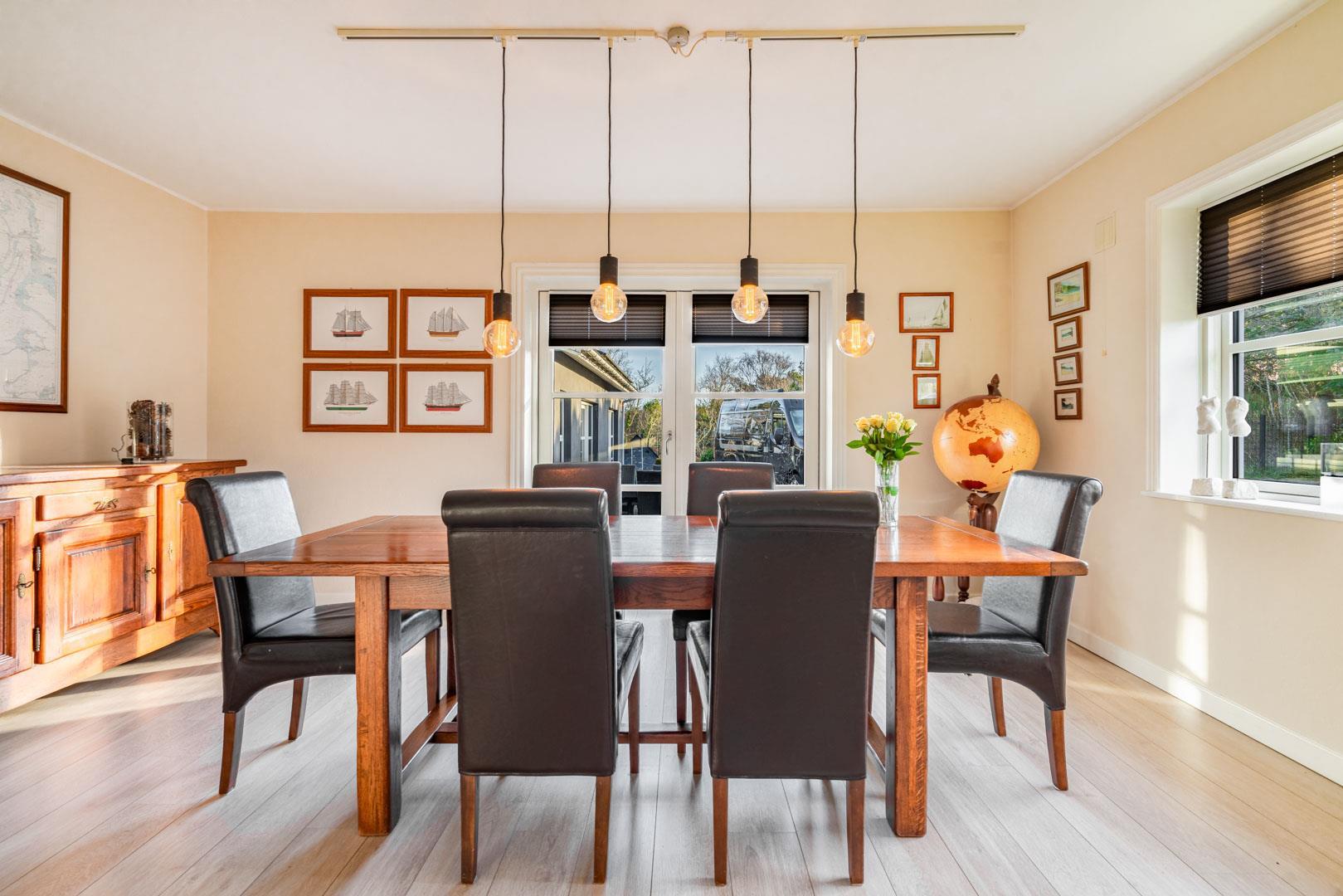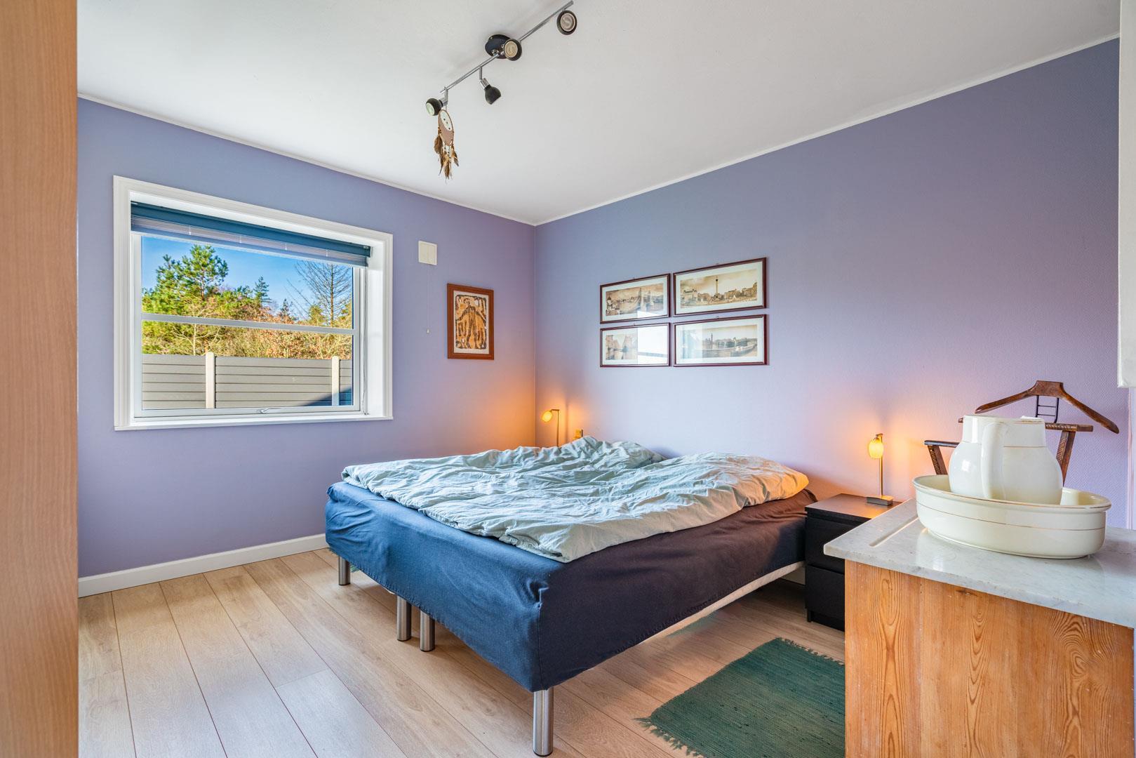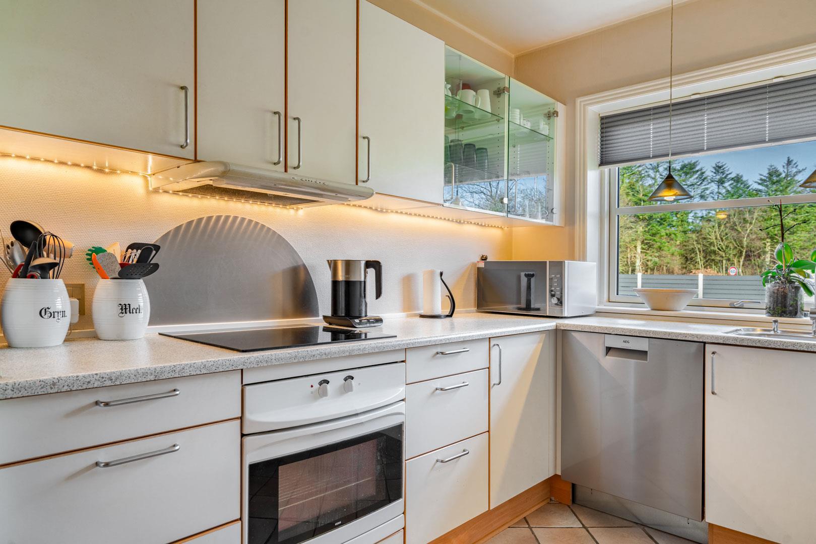 Auf 110m² Wohnfläche bietet dieses Ferienhaus alles, was ihr für einen entspannten Urlaub in Dänemark braucht. Der Wohnraum ist hell und freundlich gestaltet, mit großen Fenstern und einem Kamin, der besonders an kühleren Tagen für wohlige Wärme sorgt. Ergänzt wird er durch eine Wärmepumpe, die das Raumklima angenehm reguliert und energiesparend heizt.