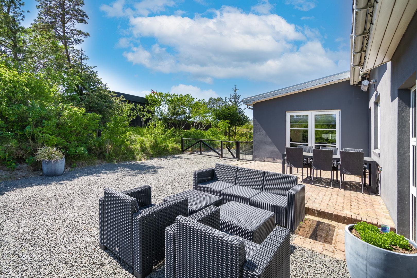 Mit seiner Mischung aus Natur, Komfort und Hundefreundlichkeit ist der Außenbereich dieses Ferienhauses im Vesterlundvej 28 wie geschaffen für entspannte Urlaubstage an der Nordsee.