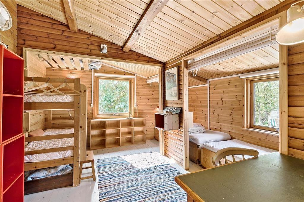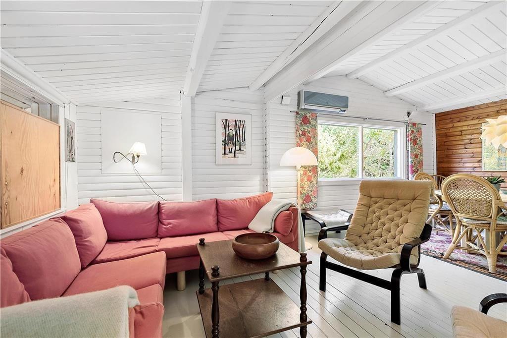 Dieses Ferienhaus am in der Nähe des kleinen Dorfes Nyrup ist außergewöhnlich gestaltet. Es bietet ein großes Wohnzimmer mit Esstisch und einem Ecksofa, das offen mit dem dahinterliegenden Schlafzimmer verbunden ist. Wenn du kleine Kinder hast, bist du in ihrer Nähe, während sie schlafen und kannst gleichzeitig auf dem Sofa sitzen, spielen oder dich unterhalten. Die offene Raumaufteilung sorgt dafür, dass man sich nah kommt, was wiederum einen Teil des Charmes dieses Ferienhauses ausmacht.
