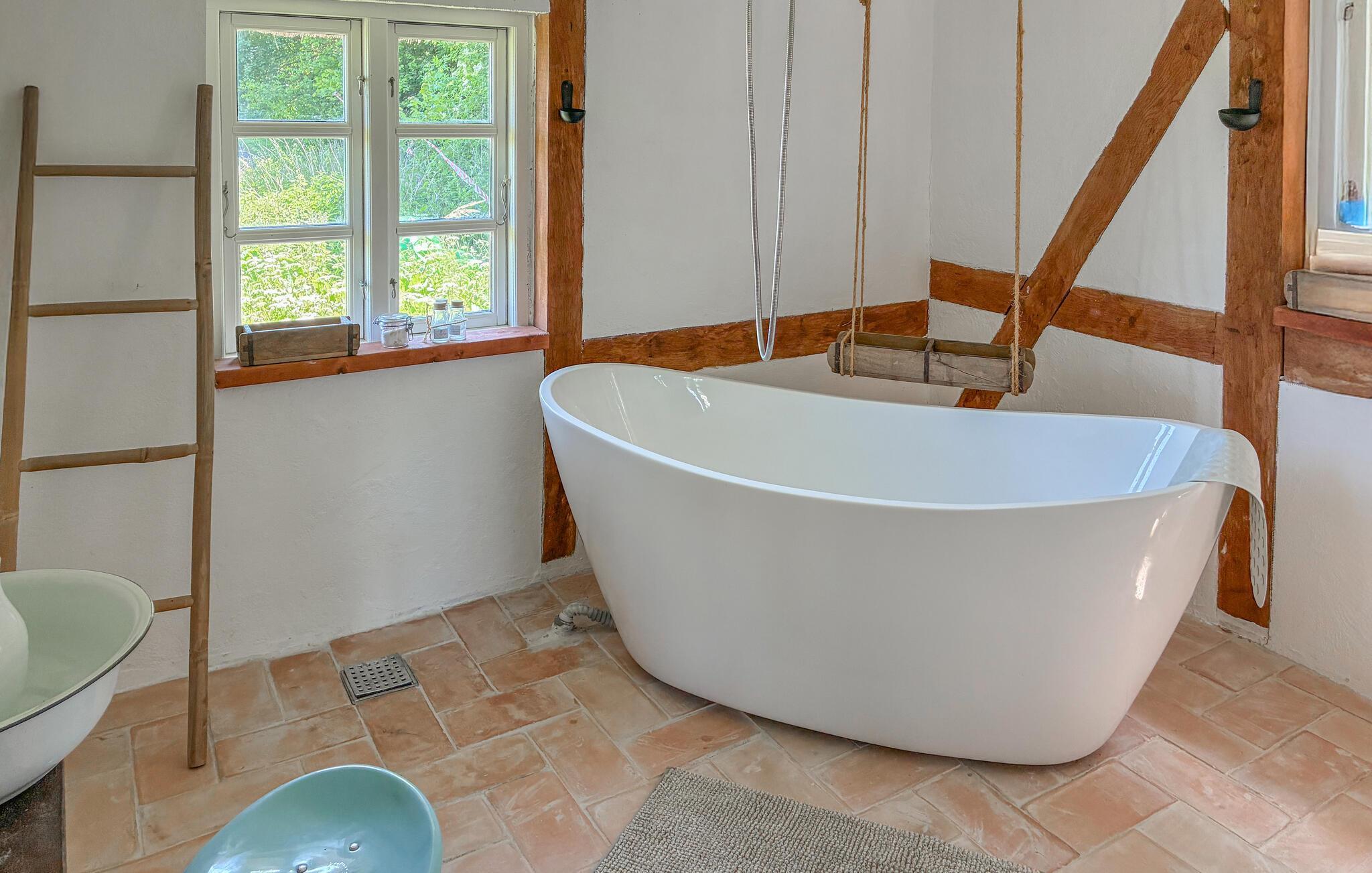 Ihr großzügiges Ferienhaus bietet Ihnen einen traditionellen Landhausstil und ist ideal für alle, die Ruhe, Natur und Authentizität suchen. Verbringen Sie hier unbeschwerte Urlaubstage in ländlicher Umgebung, ideal für Familien und Freundesgruppen. Wählen Sie im weitläufigen Wohnbereich zwischen mehreren Sofaecken und Sesseln. Entspannen Sie am Feuer des Kaminofens, lesen Sie ein Buch oder spielen Sie gemeinsam Karten. Kochen Sie in der praktisch gestalteten Küche und genießen Sie Ihre Mahlzeiten am großen Esstisch mit Blick ins Grüne. Überall spüren Sie die Geschichte des Hauses. Sichtbare Holzbalken und traditionelle Einrichtung verleihen ihm einen besonderen Charme.