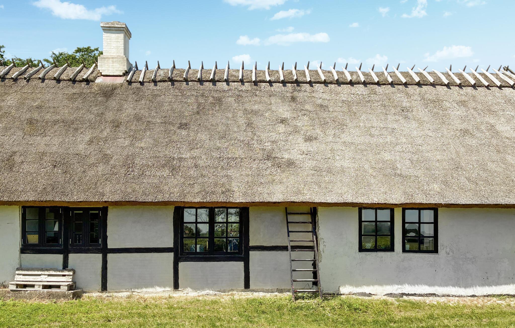 Charmantes Reetdachhaus mit historischem Flair und großem Garten in ruhiger ländlicher Umgebung nahe Sakskøbing.