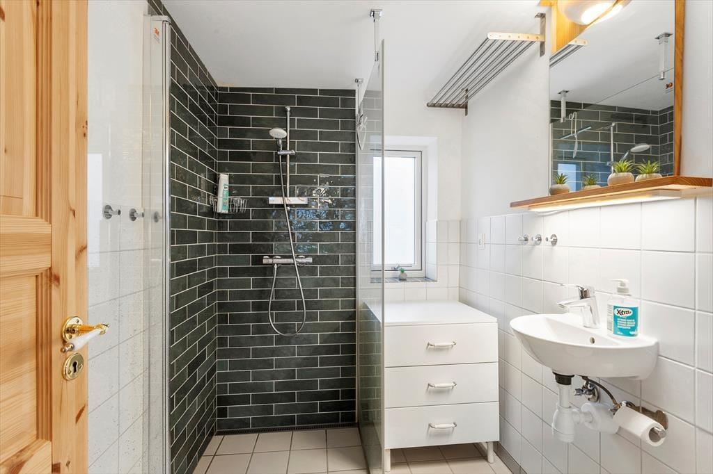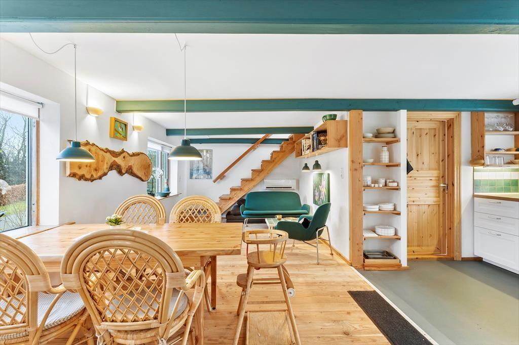 Schönes und modernisiertes Ferienhaus, möbliert auf 2 Ebenen. Im Erdgeschoss des Hauses befindet sich eine wirklich schöne und gut ausgestattete Küche mit unter anderem Spülmaschine und in offener Verbindung mit einem schönen Essbereich für 5 Personen und Zugang zu einer großzügigen Südwestterrasse, von der aus sich ein herrlicher Blick auf das Wasser bietet. Darüber hinaus gibt es ein kleineres, aber gemütliches Wohnzimmer, sowie ein schönes neues Badezimmer mit Fußbodenheizung.