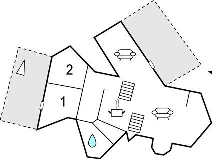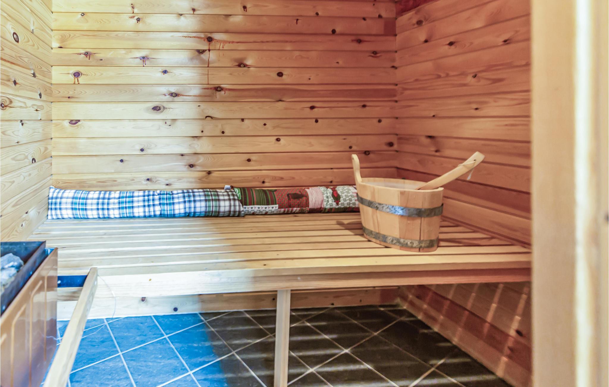 Von der offenen Küche führen einige Stufen hinunter zum Wohnzimmer. Es gibt ein schönes Bad mit Sauna und Dusche, 2 gute Zimmer und einen geräumigen Schlafboden, der sich am Besten für Teenager oder Kinder eignet, die hier Chromecast und eine Playstation vorfinden.