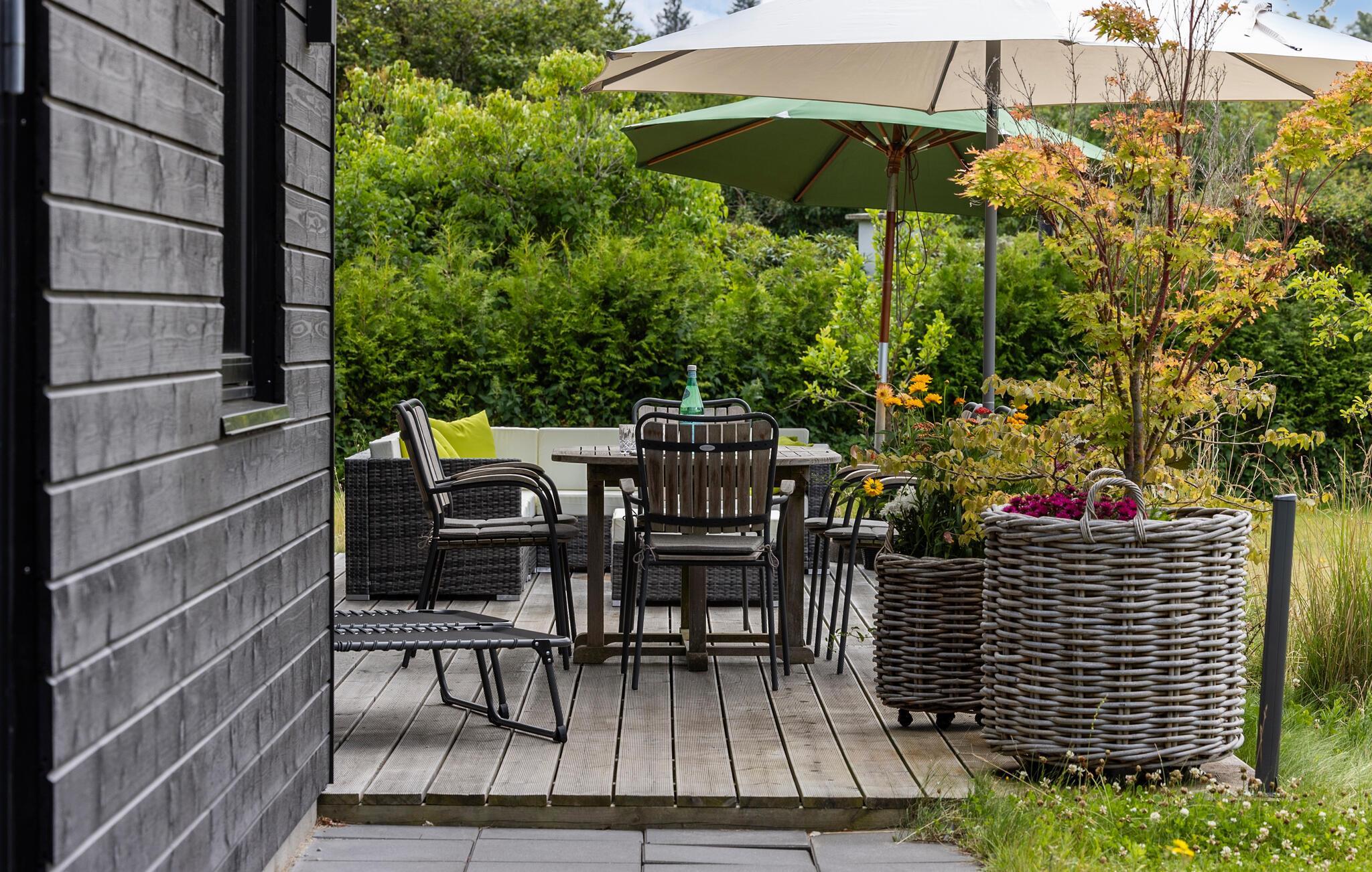 Morgens lädt die Terrasse zu einer ersten Tasse duftenden Kaffees und einem ausgiebigen Frühstück ein. Entspannen Sie sich hier bei guten Gesprächen oder vertiefen Sie sich in Ihre Urlaubslektüre. Entfachen Sie abends den Grill und bereiten Sie saftige Grillgerichte zu, während Sie die Stille der Umgebung genießen.