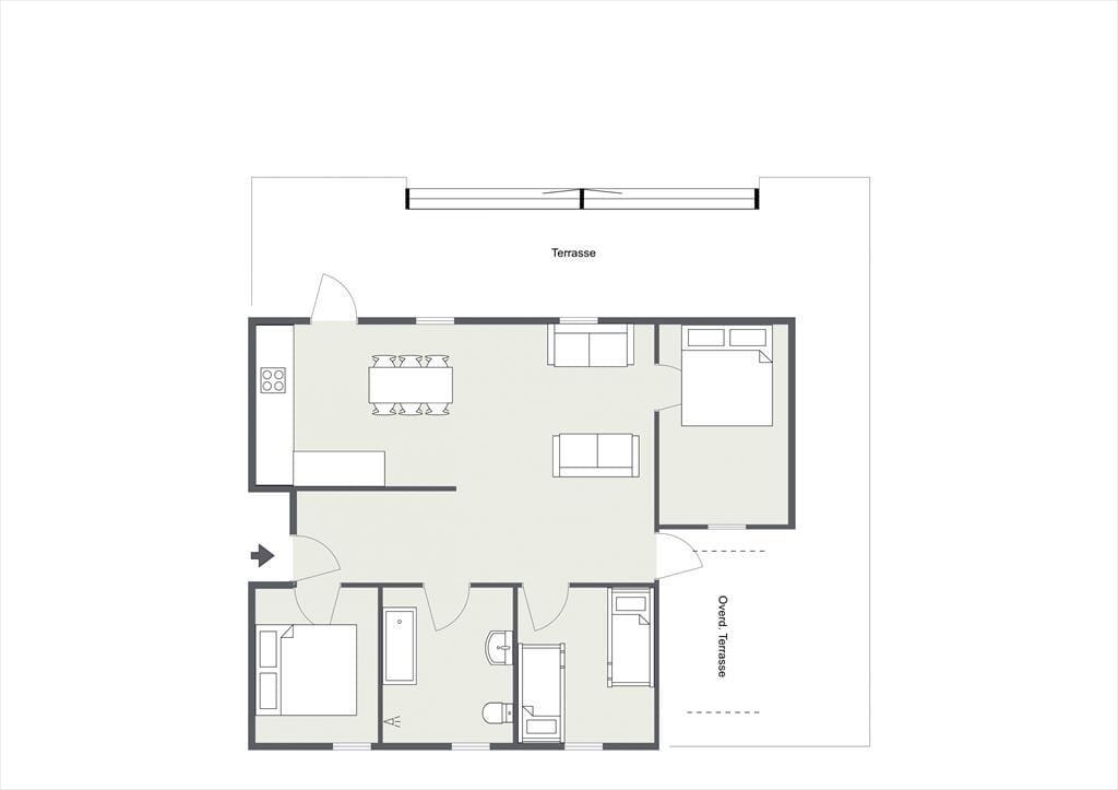 Unmittelbar nach dem ersten Betreten deines Ferienhauses nimmt dich der helle, schöne Aufenthaltsraum mit Platz für deine ganze Familie in Empfang. Der Aufenthaltsraum setzt sich aus der offenen Küche, dem Wohn- und dem Essbereich zusammen. Viele schöne und stimmungsvolle Stunden des Beisammenseins genießt du in diesem Raum beispielsweise beim gemeinsamen Zubereiten der täglichen Mahlzeiten, beim Essen, bei gemütlichen Runden in der Polstersitzgruppe und während eines vergnügten Spieleabends am Esstisch. Vom Wohnraum aus gelangst du hinaus auf eine schöne, offene Terrasse, auf der du mit viel Sonne und frischer Seeluft verwöhnt wirst. Der Rest der Wohnfläche ist drei ansprechenden Schlafräumen und einem großen Badezimmer mit einer Dusche und einer Badewanne gewidmet.