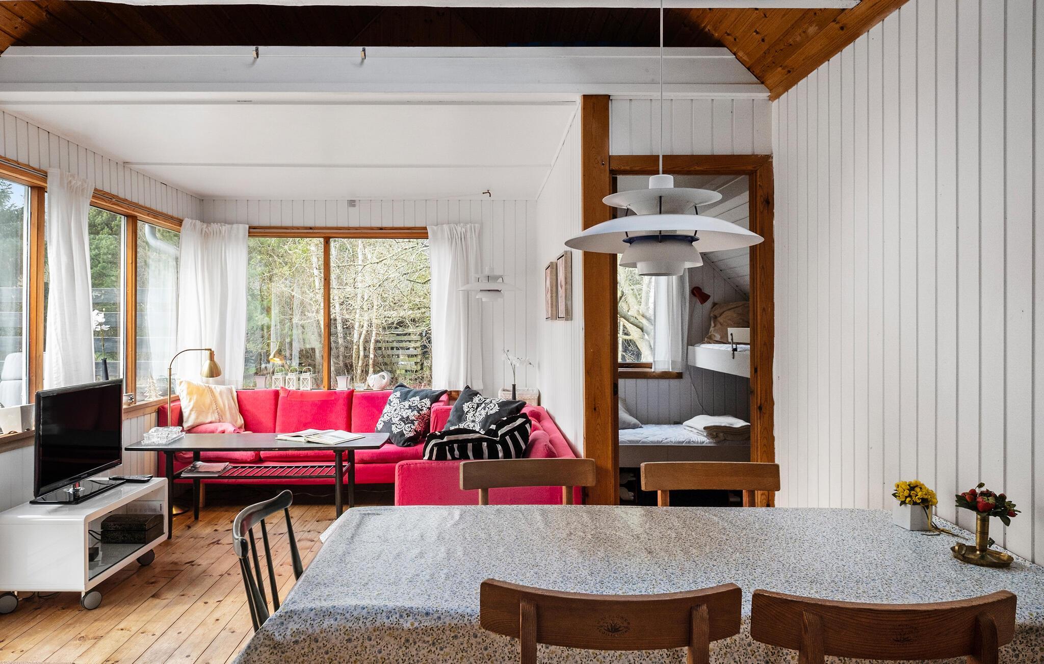 Freuen Sie sich auf Ihren nächsten Urlaub mit der ganzen Familie in diesem klassischen Ferienhaus mit Retro-Charme, das durch seinen offenen Wohnbereich und eine freundliche Einrichtung in hellen Tönen überzeugt. Beginnen Sie Ihren Morgen mit einem entspannten Frühstück am Esstisch im Wohnbereich, der mit großen Fenstern und viel natürlichem Licht eine angenehme Stimmung erzeugt.
