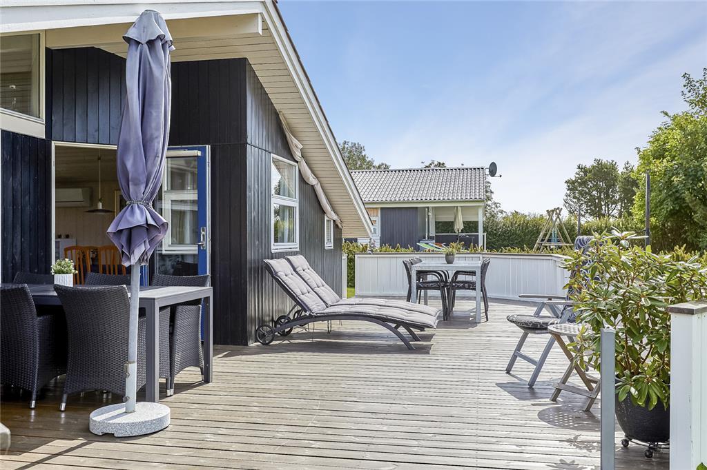 Die großzügige Terrasse ist der perfekte Ort für lange Sommerabende, an denen der Grill köstliche Düfte verströmt und die letzten Sonnenstrahlen den Himmel in warme Farben tauchen. Vielleicht lassen Sie den Tag mit einem fröhlichen Spiel im Garten oder einem ruhigen Spaziergang zum Strand ausklingen, wo die Kinder im flachen Wasser planschen und schöne Muscheln sammeln können.