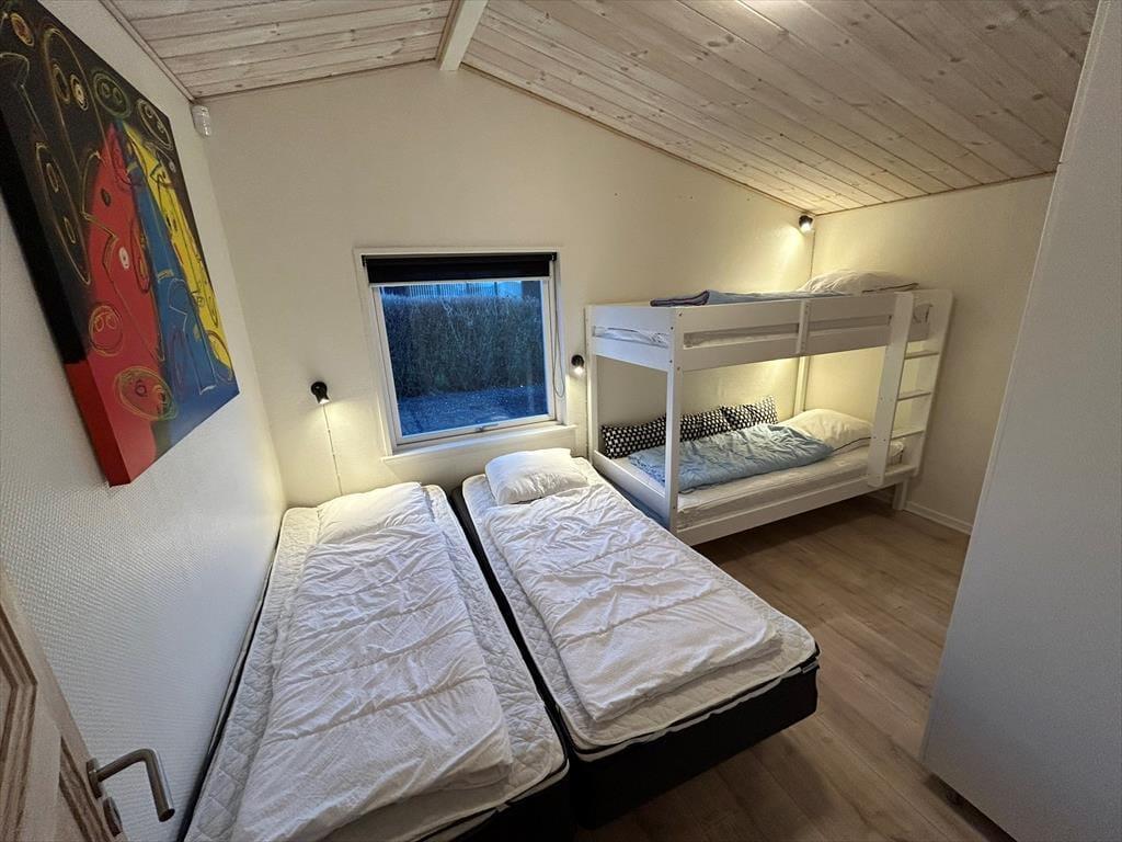 Mit insgesamt vier Schlafzimmern bietet das Ferienhaus genügend Platz für eine große Familie. Sie können problemlos acht Erwachsene und zwei Kinder beherbergen. Alle 4 Schlafzimmer haben jeweils ein Doppelbett. Das vierte und größte Schlafzimmer hat auch ein schönes Etagenbett.Das Herzstück des Hauses bildet allerdings der Küchen- und Essbereich, der direkt mit dem Wohnraum verbunden ist. Die Küche bietet Ihnen alles, was Sie für die Zubereitung köstlicher Urlaubsmahlzeiten benötigen. Den ungeliebten Abwasch übernimmt selbstverständlich der Geschirrspüler. Der an die Küche schließende Wohnraum bietet ausreichend Platz für alle Mitreisenden. Hier können Sie in geselliger Runde die Mahlzeiten am Esstisch genießen und es sich im Anschluss in aller Gemütlichkeit auf dem Sofa vor dem Fernseher gemütlich machen.