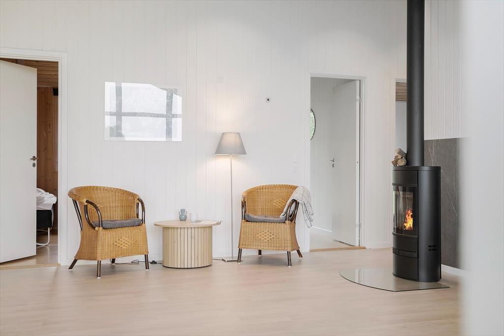 Der gemütliche Sofabereich mit den großen Ostfenstern wird durch den Kaminofen erwärmt und bietet den perfekten Rahmen, um mit einem Buch zu entspannen oder einen Film anzusehen. Hier können Sie sich wirklich erholen und den Urlaub genießen. Am Abend können Sie abschalten und die vielen Fernsehkanäle des Ferienhauses nutzen.