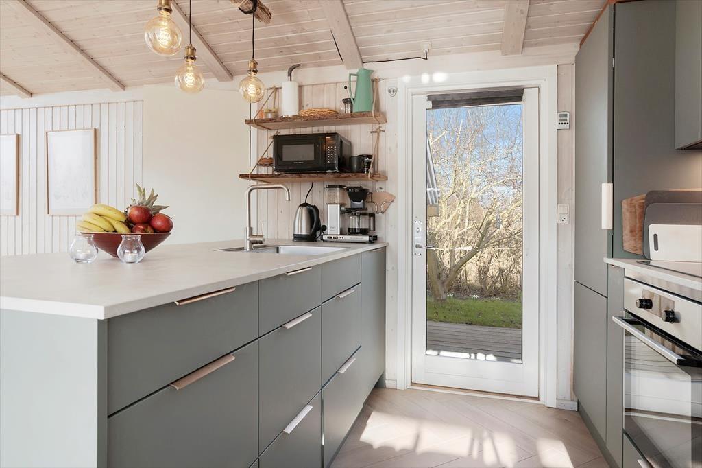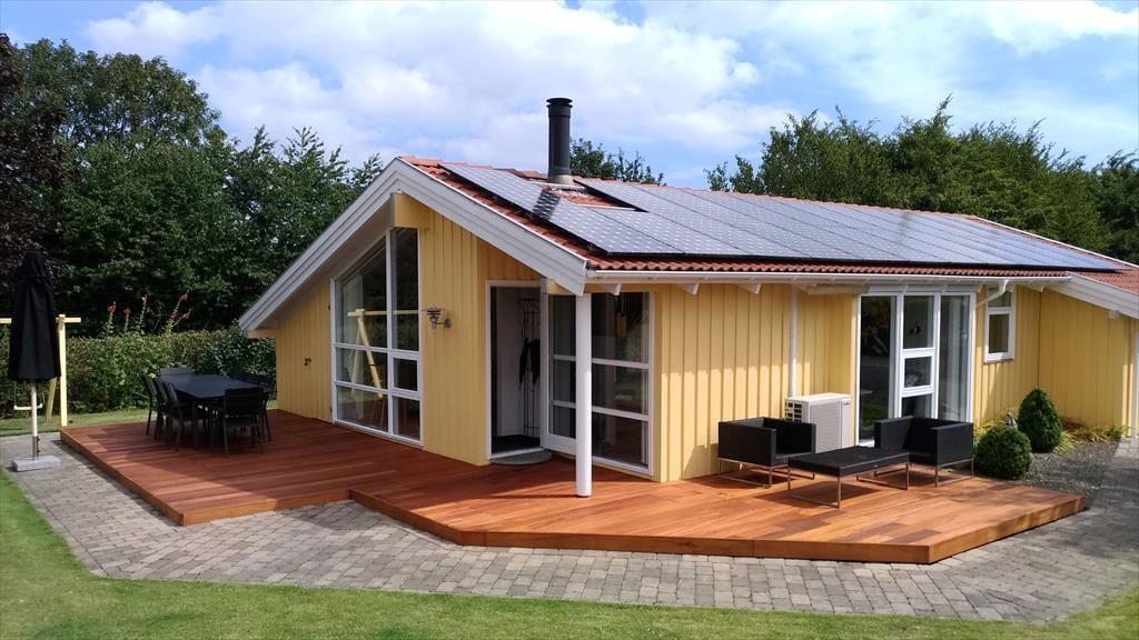 Sobald ihr das Ferienhaus betretet, spürt ihr sofort die gemütliche Atmosphäre und das Gefühl, dass hier genug Platz ist, um gemeinsam den Urlaub zu genießen. Die großen Fenster lassen viel Licht herein und schaffen eine Verbindung zwischen den Innenräumen und dem Garten. Die hellen Holzwände verleihen dem Haus eine wunderbare Sommerhaus-Stimmung und bilden den Rahmen für ein fremragendes Urlaubserlebnis.