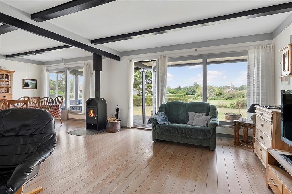 Die offene Küche ist komplett ausgestattet mit modernen Geräten wie Backofen, Spülmaschine und Mikrowelle. Für Unterhaltung sorgen mehrere TV-Sender aus Deutschland, Dänemark, Norwegen und Schweden sowie kostenfreies WLAN mit hoher Geschwindigkeit. Der 500 Meter entfernte Strand lädt zu ausgedehnten Spaziergängen oder zum Baden ein.