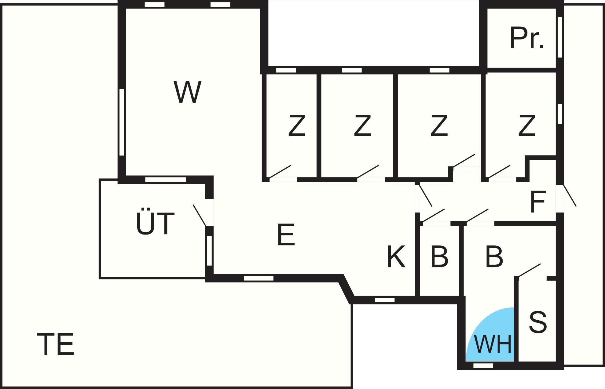 Off. Küche: E-Herd, Kühl-Gefrier-Kombi, Mikrow., Abzugsh., Kaffeem., Spülm.
