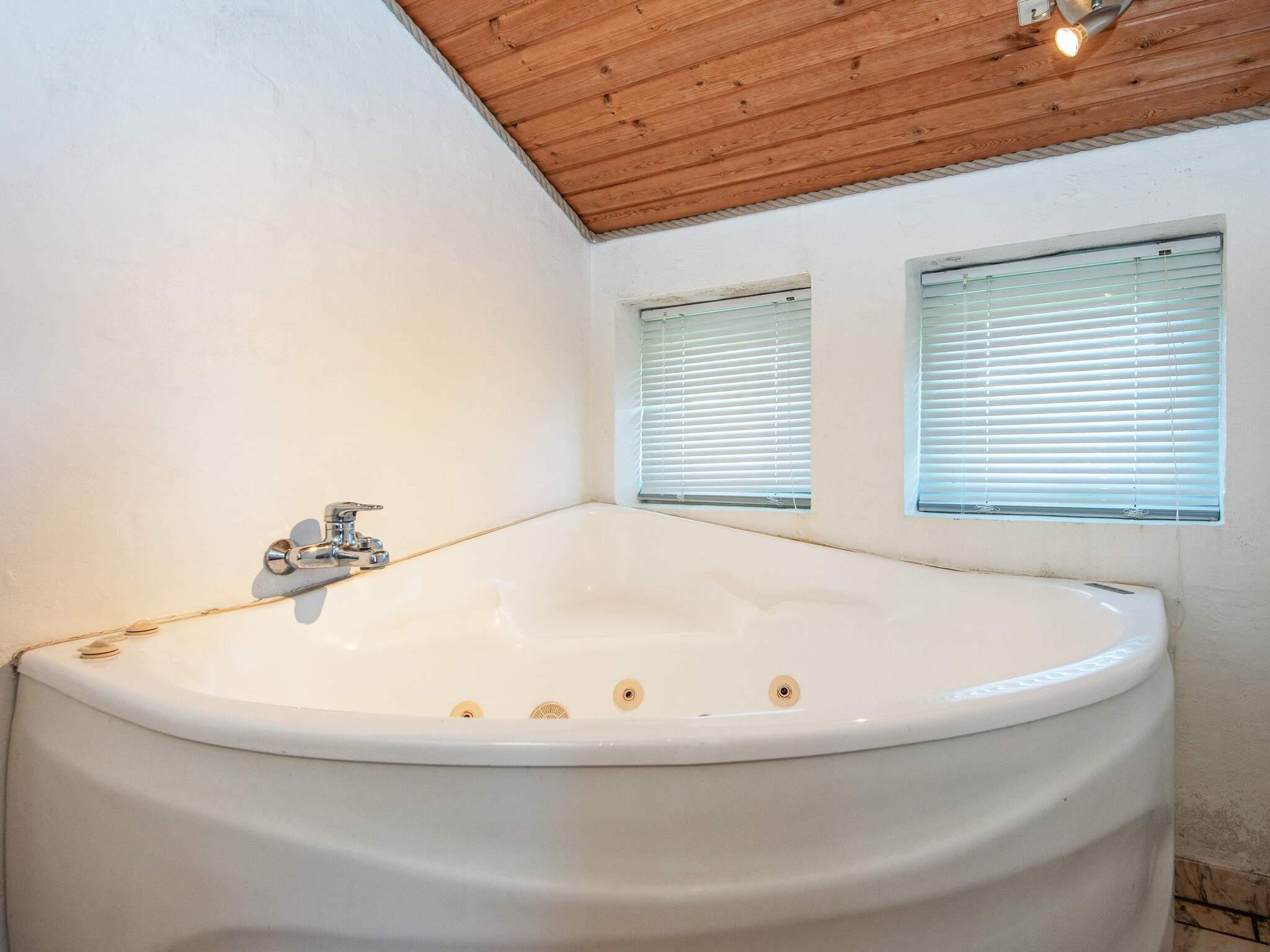 Zum Ferienhaus gehört auch ein großes Bad mit 2-Pers. Whirlpool, Sauna und Fußbodenheizung, sodass Sie hier herrlich entspannen können. Außer dem großen Bad gibt es eine Gästetoilette mit Fußbodenheizung. Im Wohnzimmer verbreitet ein Holzofen behagliche Wärme an kühleren Tagen. Gratis WLAN-Internet ist vorhanden, Ihren eigenen Computer müssen Sie mitbringen. Im Wohnzimmer können Sie bei schlechterem Wetter Videos oder DVDs sehen. Praktischer Waschtrockner (ein Gerät) im Haus.