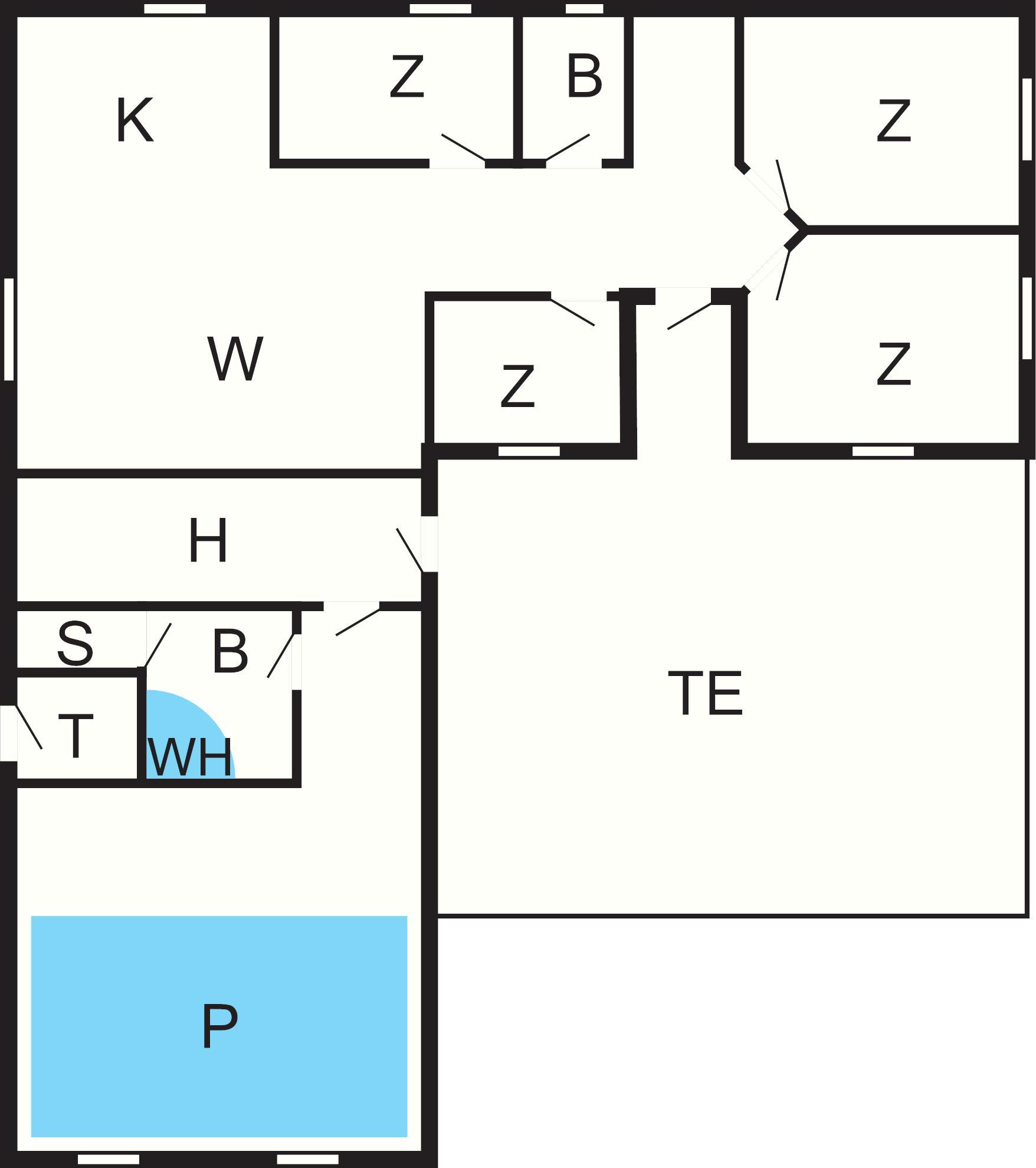 Gleichzeitig wurde ein großer Hems gebaut, auf dem zwei Personen Platz haben und schlafen können. Neben den Schlafplätzen auf dem Hems gibt es natürlich noch vier Schlafzimmer, die auch jeweils zwei Schlafplätze bieten. Alle vier Zimmer liegen in dem einen Flügel des Hauses, wo auch das zweite Badezimmer, das u.a. mit Dusche und angenehmer Fußbodenheizung ausgestattet ist, platziert wurde.