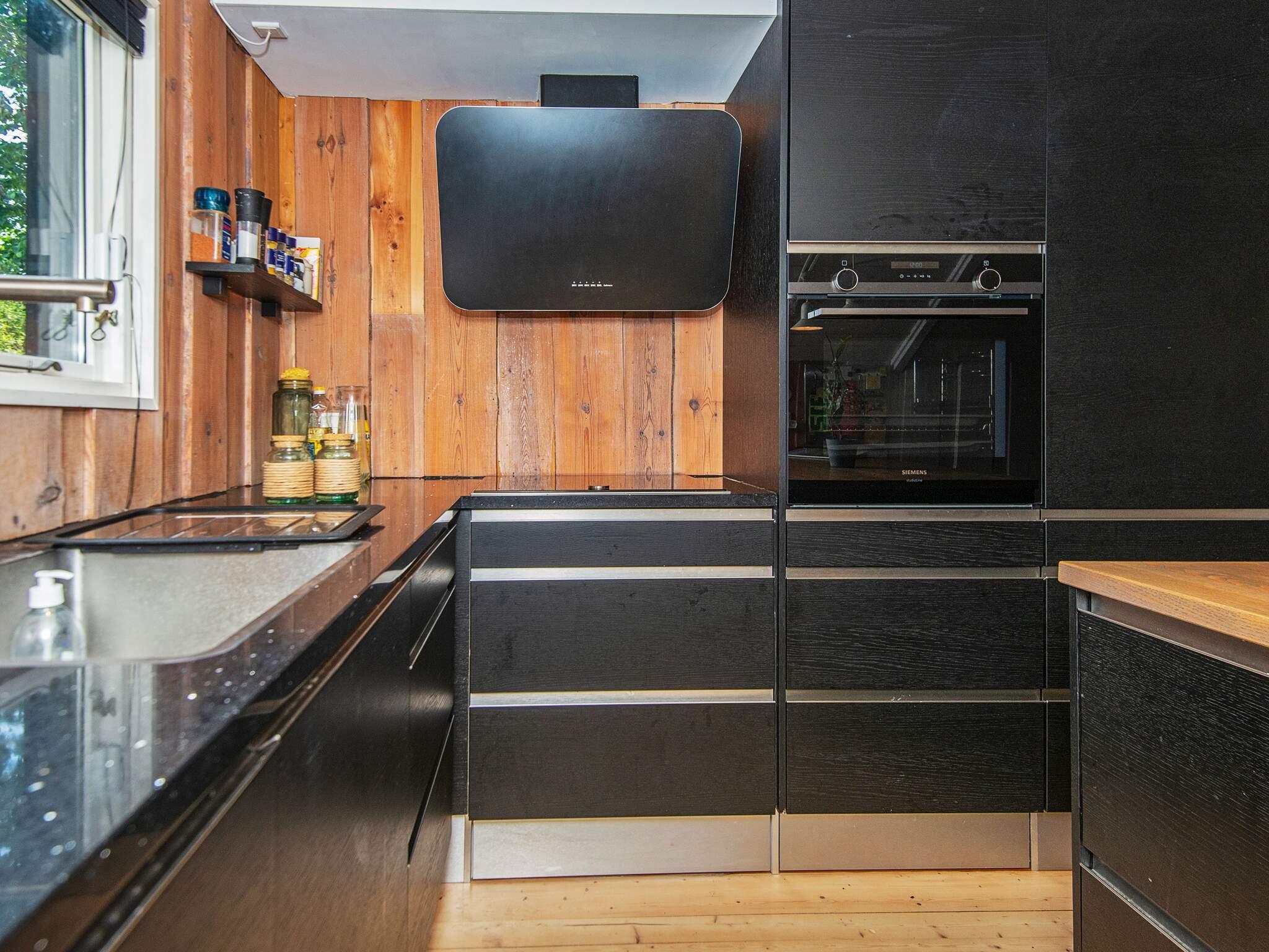 Die Küche und das Wohnzimmer sind offen miteinander kombiniert, so dass man auch beim Kochen an den Gesprächen der anderen im Wohnbereich teilnehmen kann.