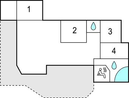 Badezimmer (nr. 1) - WC. Warmes und kaltes Wasser. Dusche