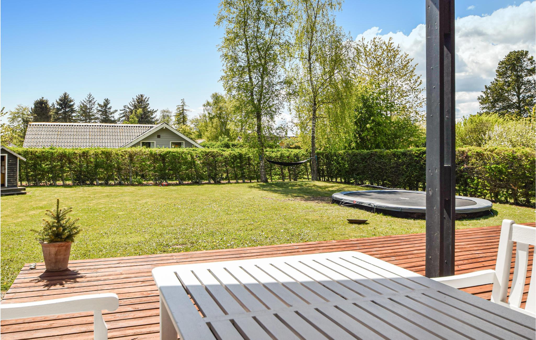 In einem schönen, gut etablierten Ferienhausgebiet mit Wegesystem zum Wasser finden Sie dieses schöne Ferienhaus. Es gibt 4 gute Zimmer und Platz für 7 Personen. Der Garten ist mit Trampolin, Schaukel, Sandkasten und Spielhaus ausgestattet. Es gibt eine große Rasenfläche, sodass Sie alle an einem Ballspiel teilnehmen können. Das Wohnzimmer ist gemütlich eingerichtet mit Essbereich und Sofagruppe in offener Verbindung zur voll ausgestatteten Küche. Es gibt einen Raum mit Waschmaschine und Trockner sowie eine schöne Ecke mit Tisch und Bänken, in der Sie sich hinsetzen und eines Ihrer Lieblingsbrettspiele spielen können.