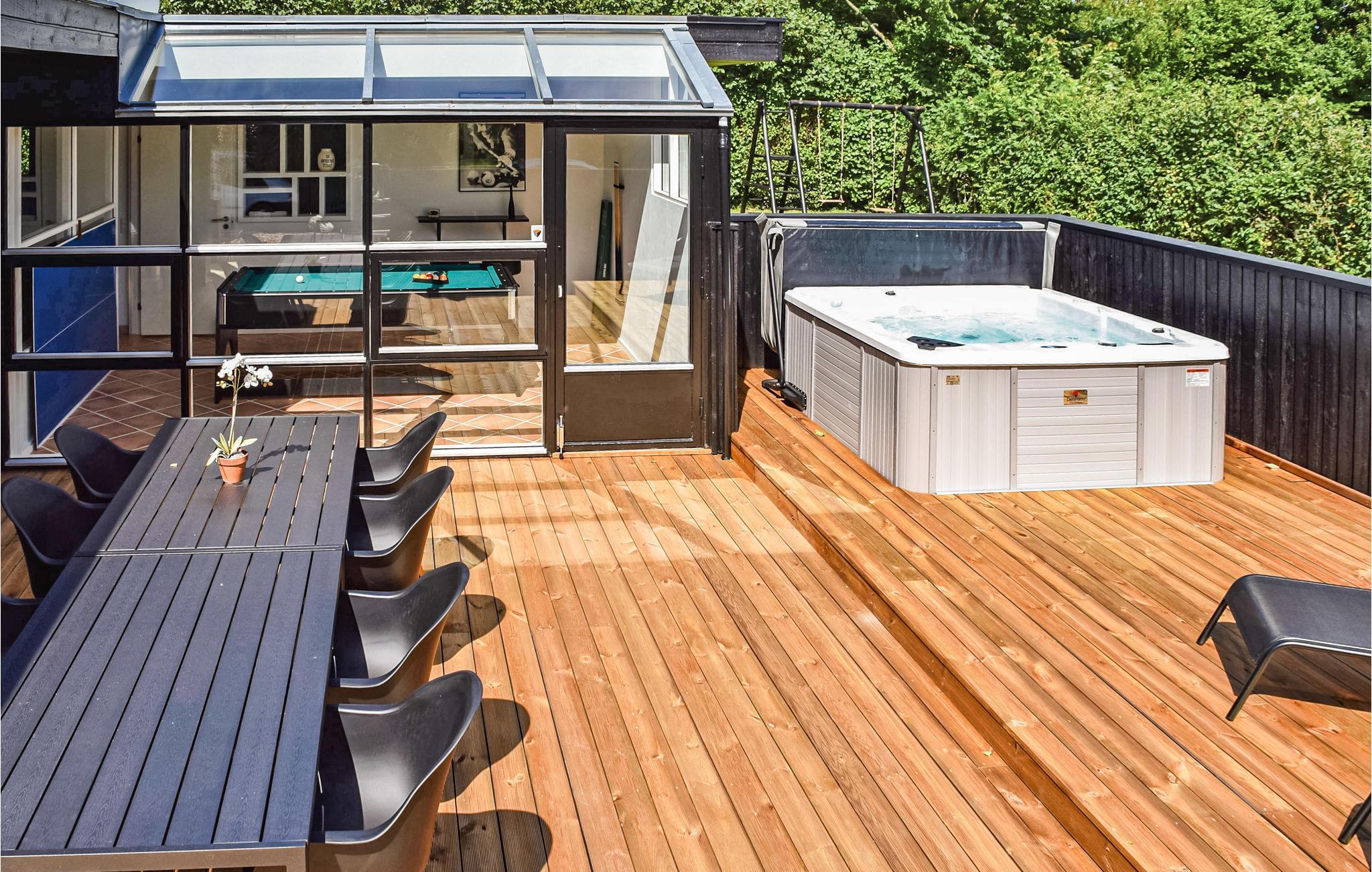 Erleben Sie Erholung in einem stilvollen Ferienhaus mit Sauna, Whirlpool und großem Garten in Pøt Strandby, Dänemark.