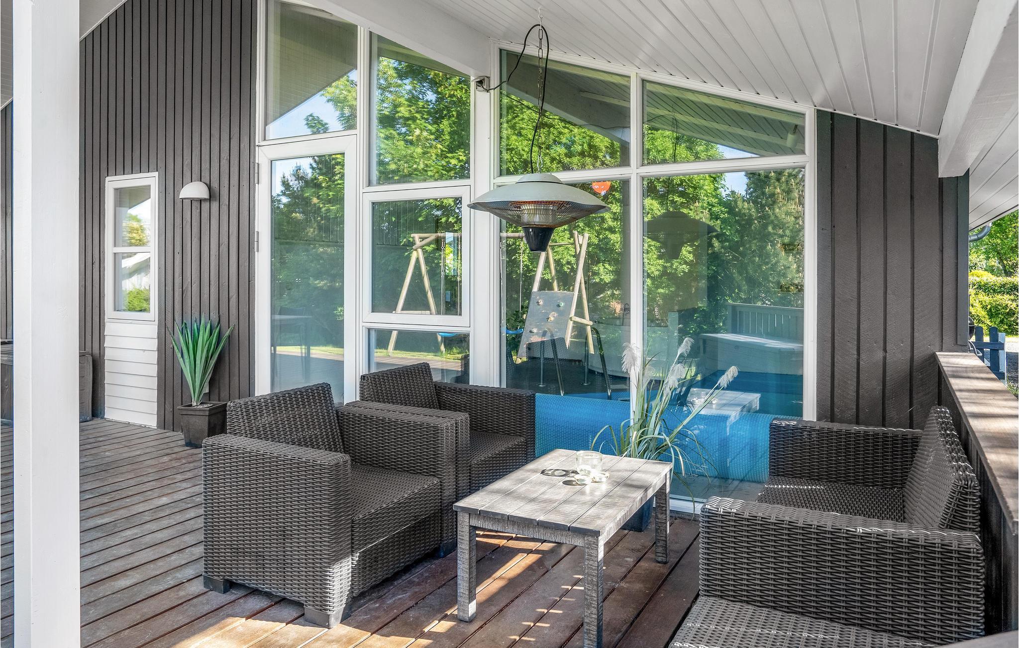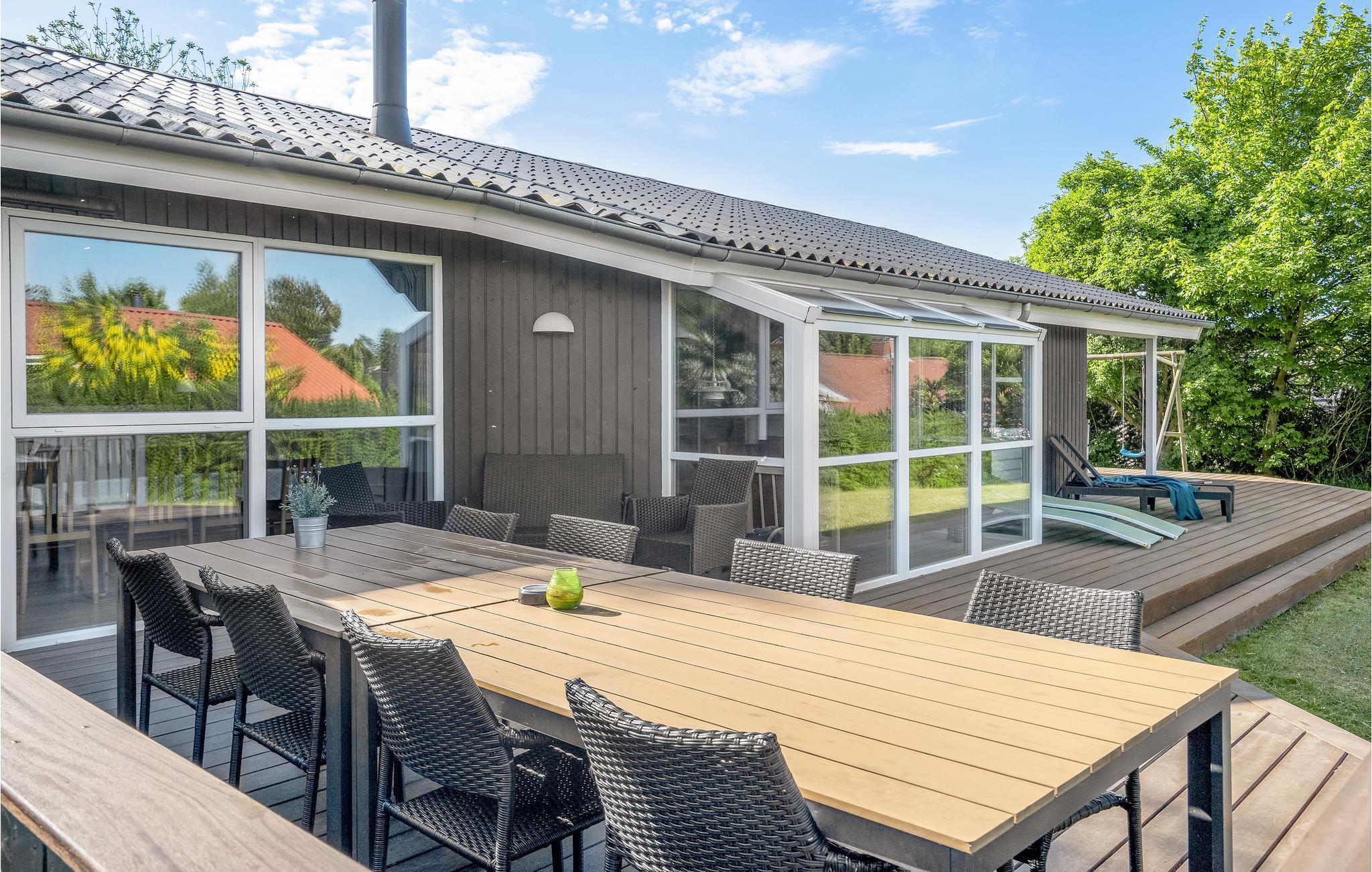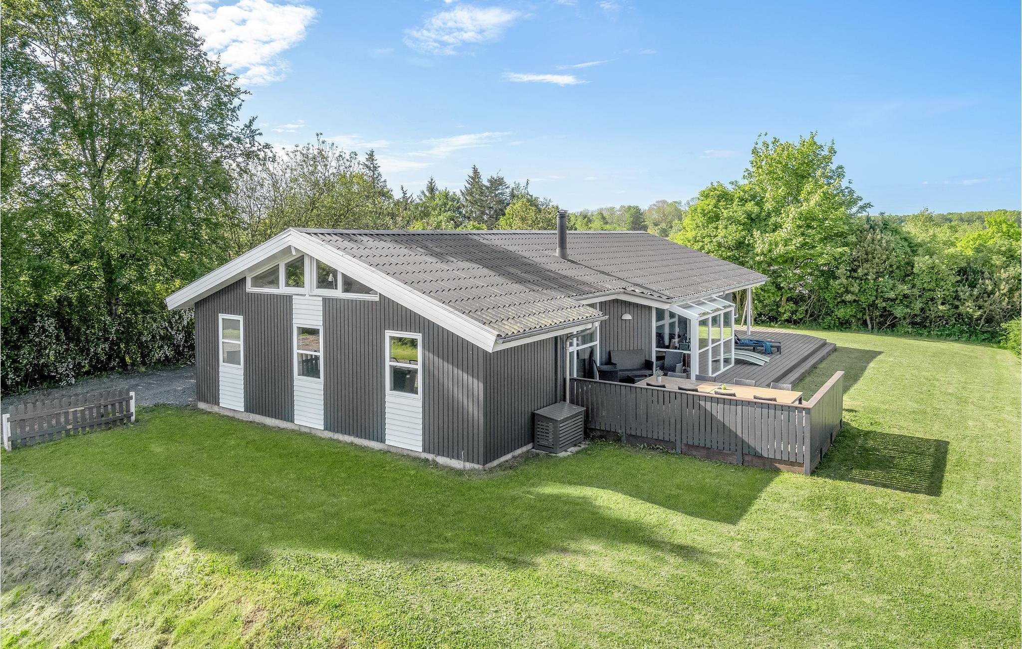Modernes Ferienhaus auf Juelsminde mit Pool, Sauna und kinderfreundlichem Garten erwartet Sie für erholsame Tage.