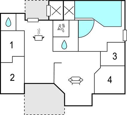 Badezimmer 6m2 (nr. 1) - WC. Warmes und kaltes Wasser. Dusche