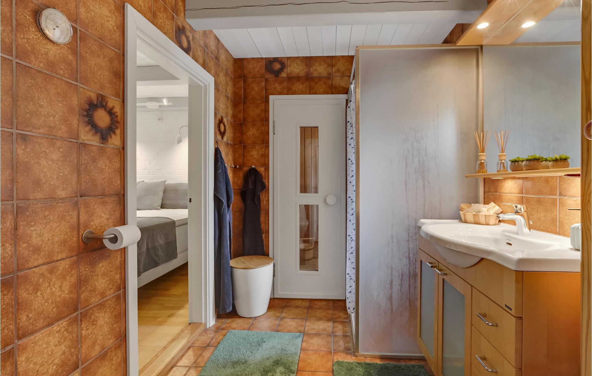 Badezimmer (nr. 1) - WC. Warmes und kaltes Wasser. Dusche