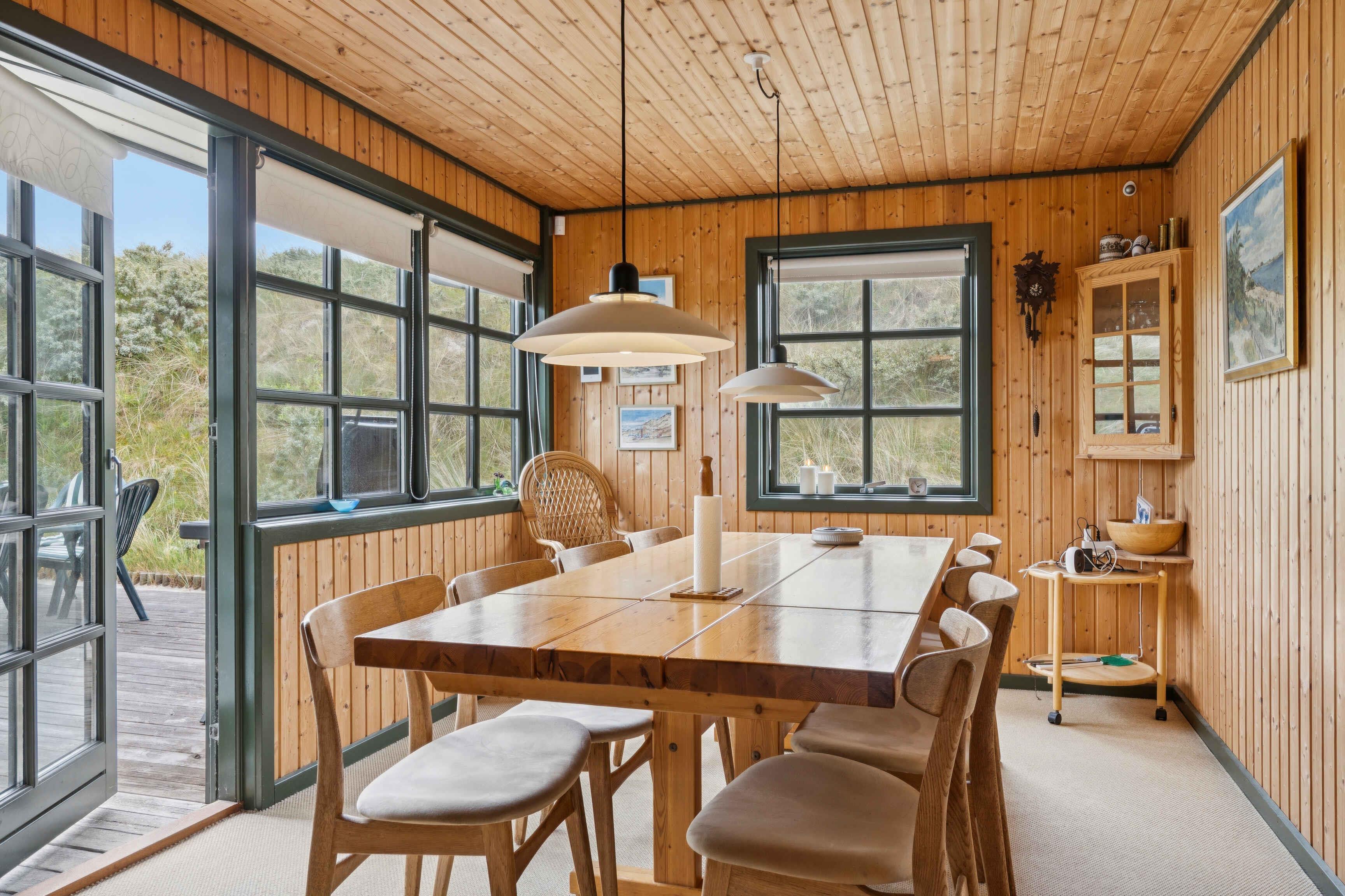 Älteres Ferienhaus in ruhiger Umgebung mit gemütlicher Atmosphäre und besonderem Charme. Wenn du einen Ort suchst, an dem du deine Ruhe hast und trotzdem nah am Wasser bist – dann ist dieses Haus genau das Richtige für dich/euch. Das Haus ist älteren Datums, wurde aber nach und nach modernisiert – mit WLAN, Streaming-TV, Geschirrspüler, Waschmaschine und Trockner. Dadurch wirkt es dennoch modern. Es gibt 9 Schlafplätze (zwei davon geeignet für größere Kinder oder kleinere Erwachsene). Haustiere sind herzlich willkommen. Eine Garage gehört zum Haus. viele Möglichkeiten, die Natur zu genießen nur 5–10 Gehminuten vom Strand entfernt große, sonnige Terrassen mit gutem Windschutz Wenn man Lust auf Stadtleben hat, kann man 3 schöne Kilometer am Nordseestrand entlang nach Blokhus spazieren. Alternativ: 5 km mit dem Fahrrad durch die Dünenlandschaft. Mit dem Auto sind es 9,5 km bis nach Blokhus. Im Haus stehen ältere Fahrräder zur Verfügung, und es gibt schöne Radwege in der Umgebung. Das Haus liegt zwischen Blokhus und Rødhus.
