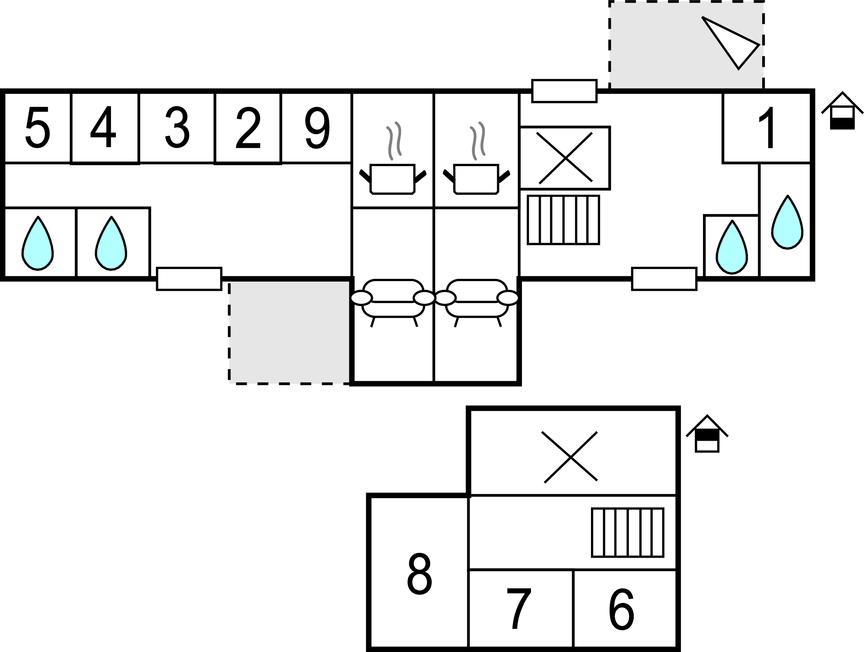Die Raumverteilung ist ideal für mehrere Familien: Es gibt 2 adrette Wohnräume und insgesamt 8 Schlafzimmer, die gut im Haus verteilt sind. So gibt es vielerlei Möglichkeiten hier die Zeit gut und in angenehmer Atmosphäre zu verbringen.