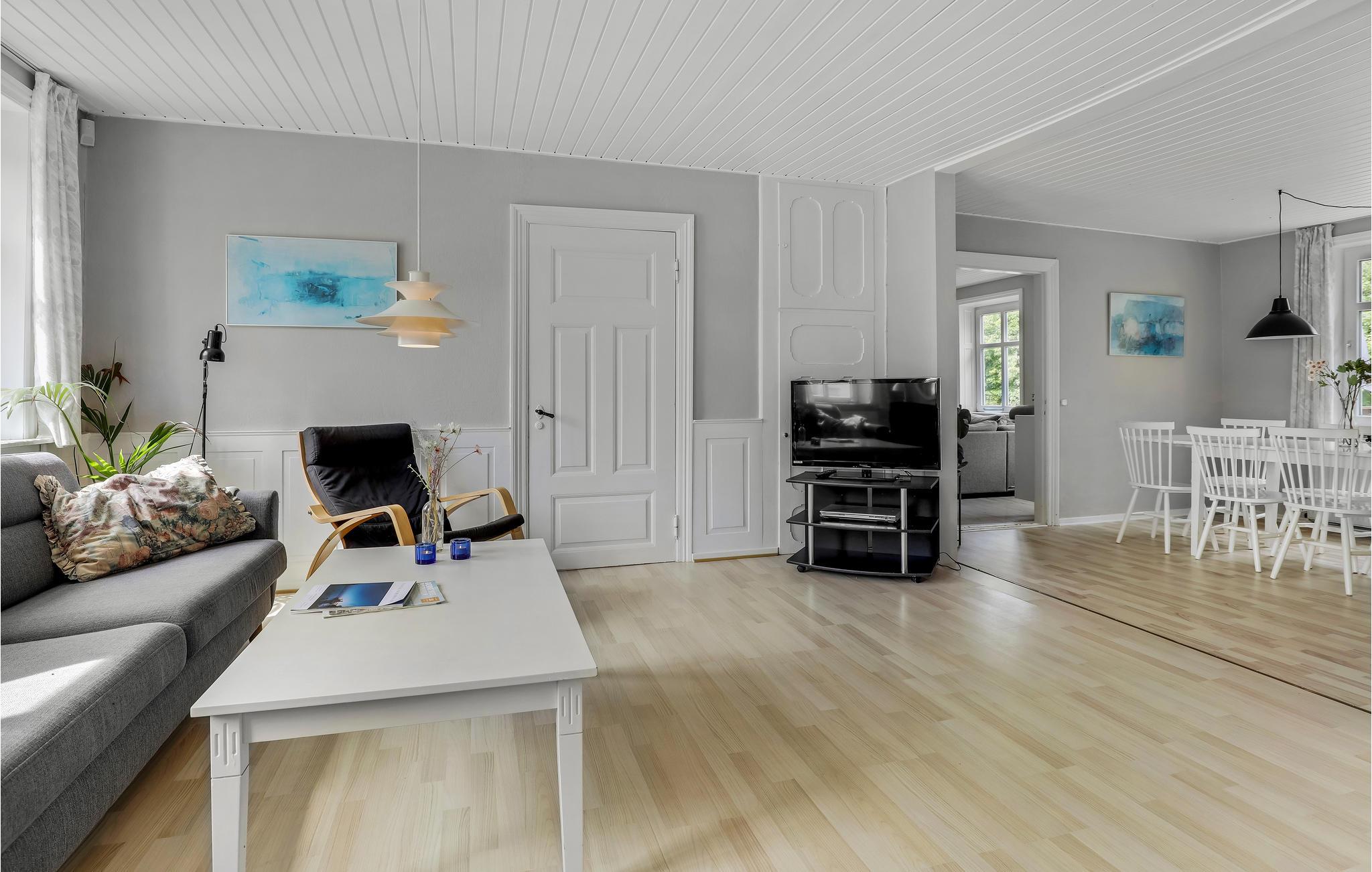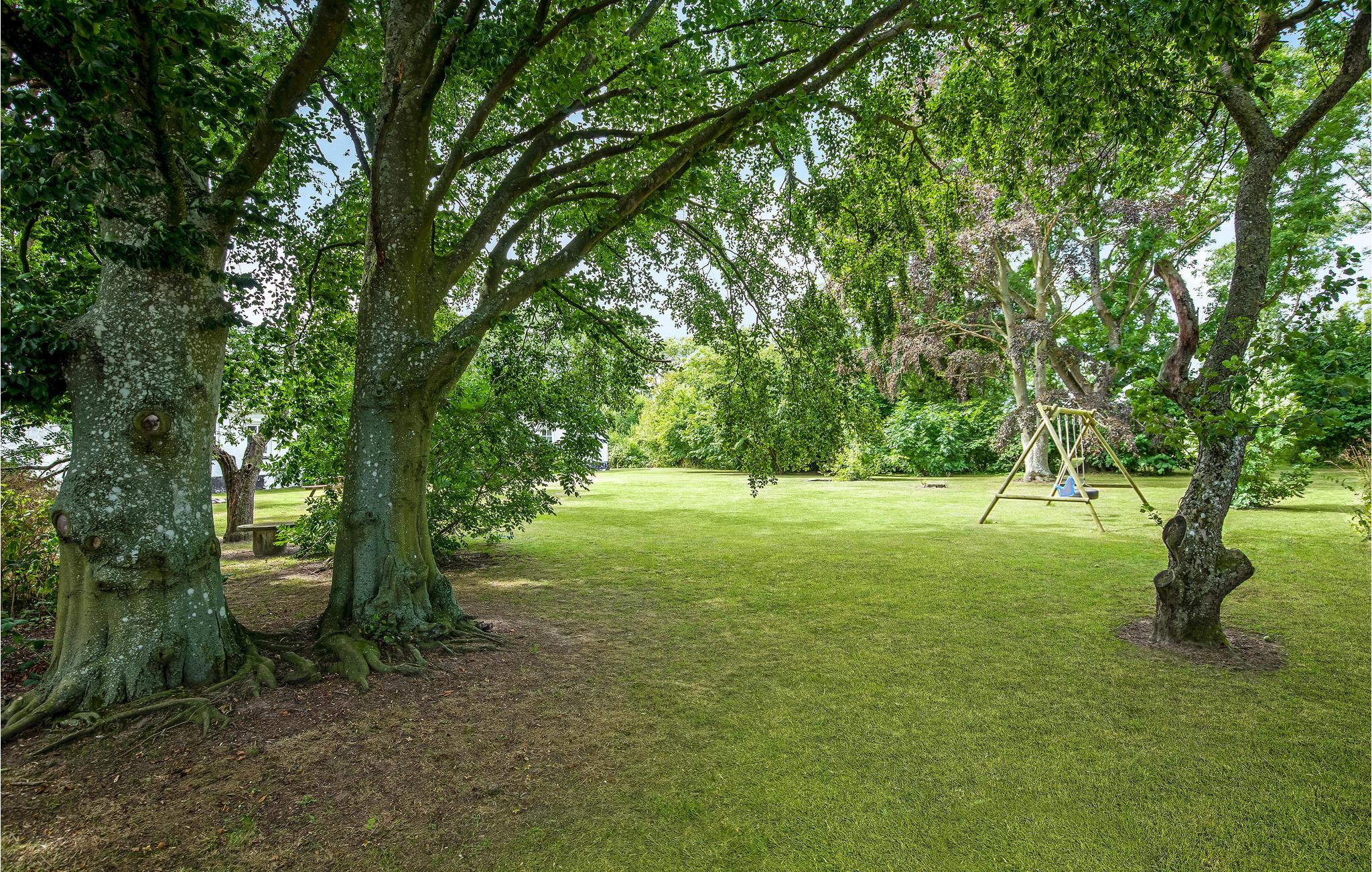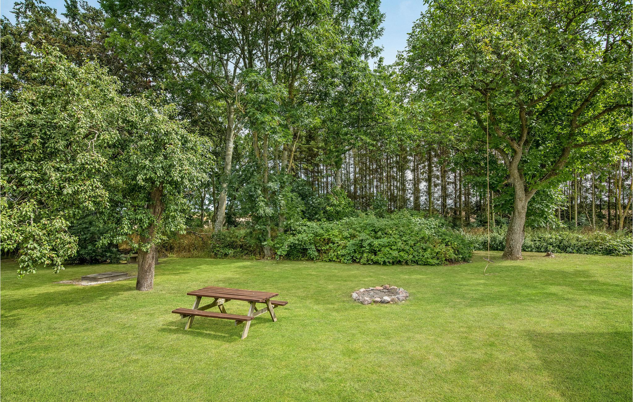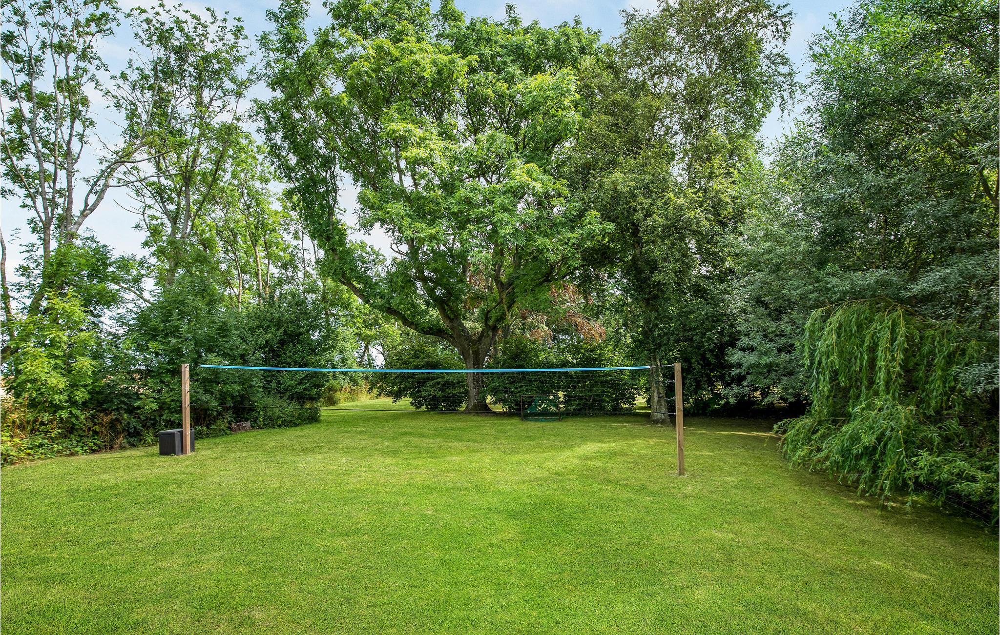 Vor dem Wohnzimmer liegen eine Holzterrasse und ein Garten, der einem Park gleicht. Im Garten gibt es sogar Platz für Ballspiele. Es ist auch ein kleiner See zu finden. Genießen Sie die Ferien hier und eine gemütliche Tour zum nur 2,5 km entfernt liegenden weißen Sandstrand Dueoddes.