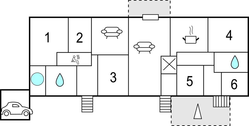 In kurzem Abstand finden Sie Wald und Strand. Das Haus ist mit 6 Schlafzimmern, 2 Badezimmern, mehreren Wohnzimmern sowie Sauna und Whirlpool ausgestattet. Ein Zimmer (S2) ist Durchgangszimmer.