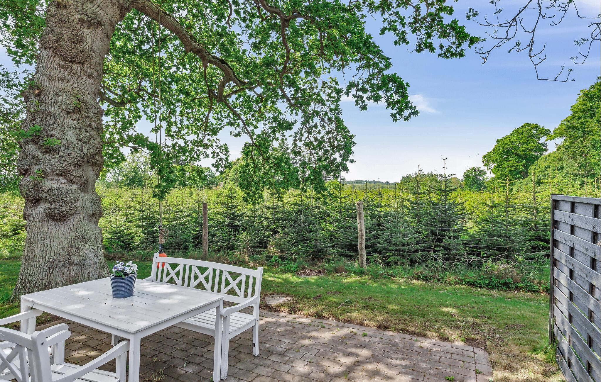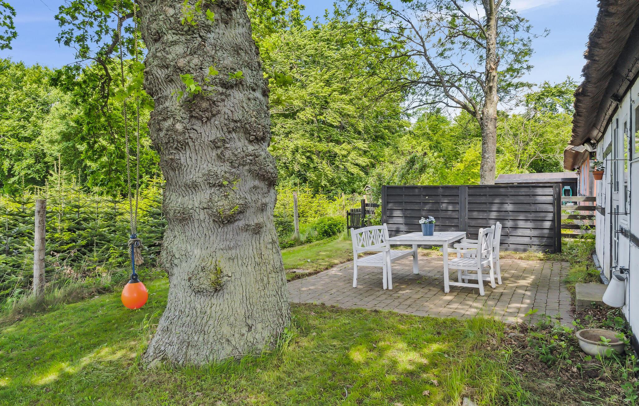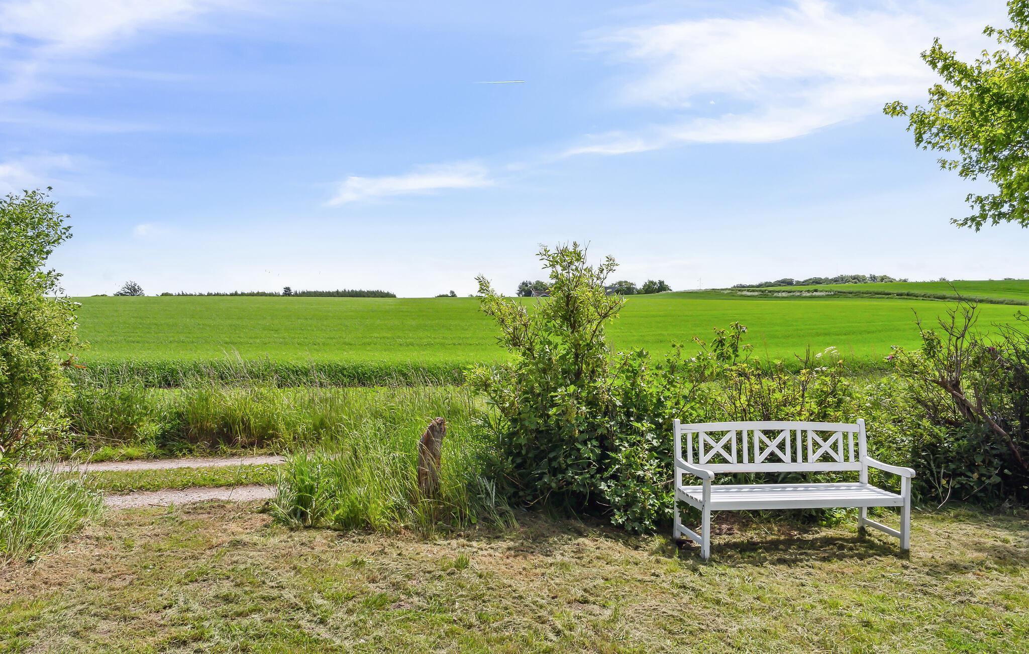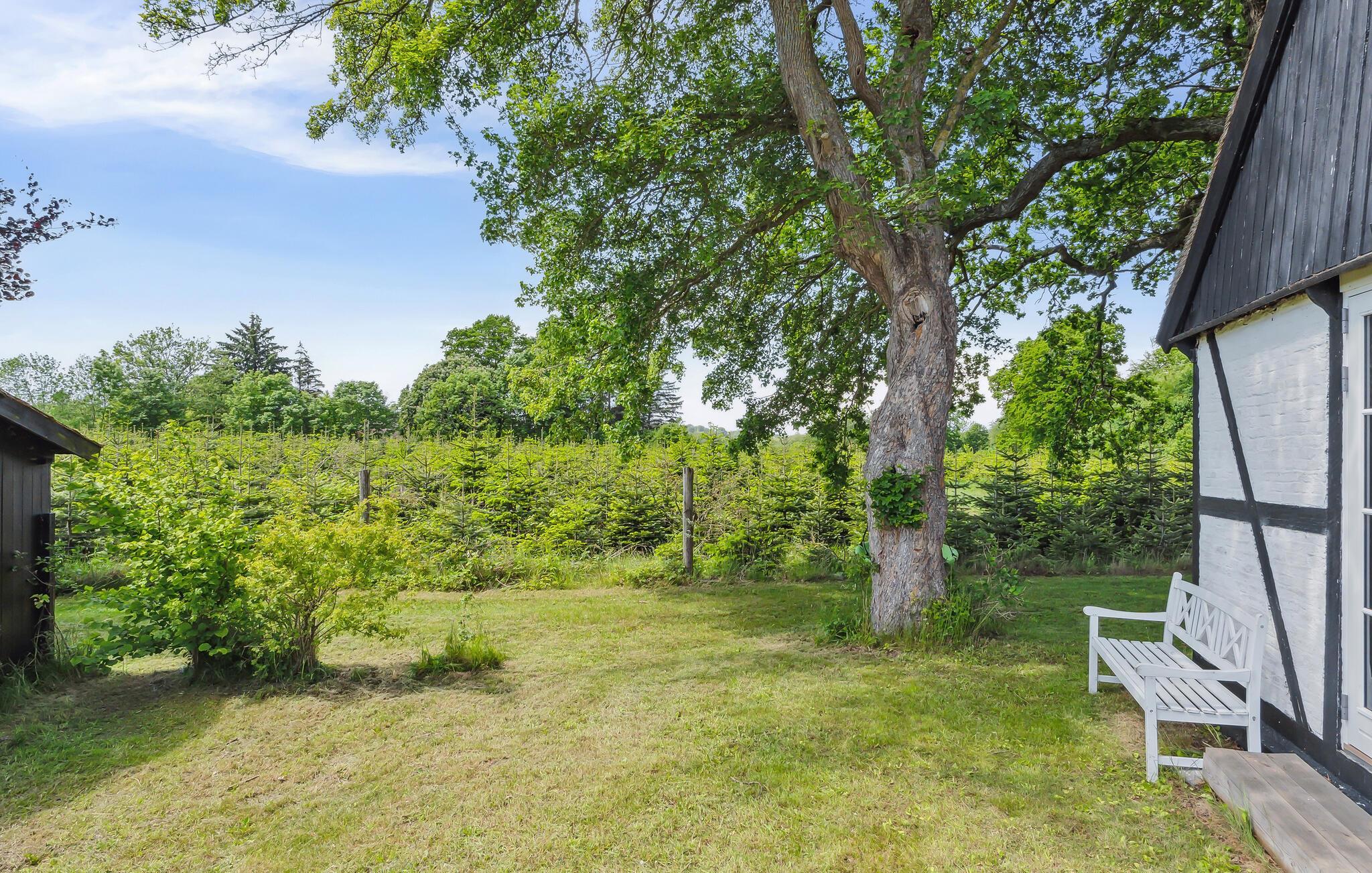 Lauschen Sie im weitläufigen Garten der Ruhe der Natur und lassen Sie den Blick über die Wiesen und Bäume schweifen. Auf der kleinen Terrasse lässt es sich wunderbar frühstücken oder abends ein Glas Wein trinken, während die Sonne am Horizont versinkt. Entzünden Sie die Feuerstelle und backen Sie knuspriges Stockbrot, während die Sterne langsam am Himmeln heraufziehen.