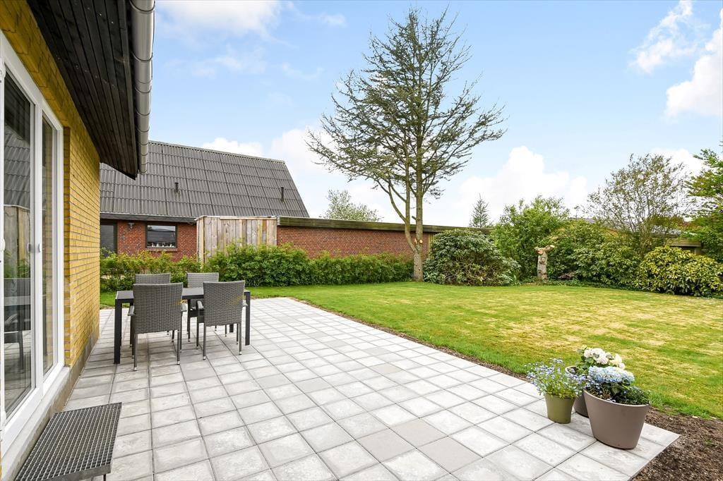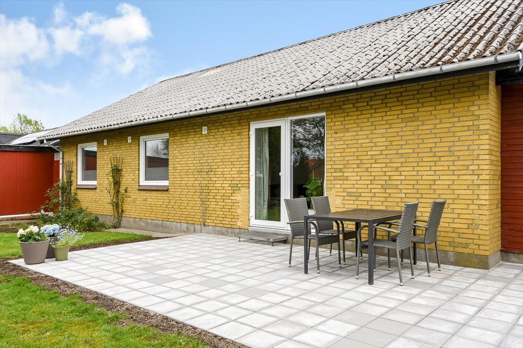 Sowohl vom Wohnzimmer als auch vom Wintergarten besteht eine Verbindung zum Hinterhof des Sommerhauses, der als wunderschöne Oase fungiert, wenn die Sonne über Rækker Mølle scheint. Die Rasenfläche lädt zum Spielen und Ballspielen ein, so können Sie die Familie bei Wikingerspielen herausfordern oder sich das Frisbee aus Ihrem Urlaubsgepäck holen – wenn Sie sich nicht lieber ins Grüne mit freiem Blick auf den blauen Himmel werfen möchten. Sowohl Gartenmöbel als auch ein Grill stehen zur Verfügung und im Jahr 2024 wurde eine Terrasse gebaut, damit Sie und Ihre Lieben bequem sitzen und den Urlaub in Ruhe genießen können.