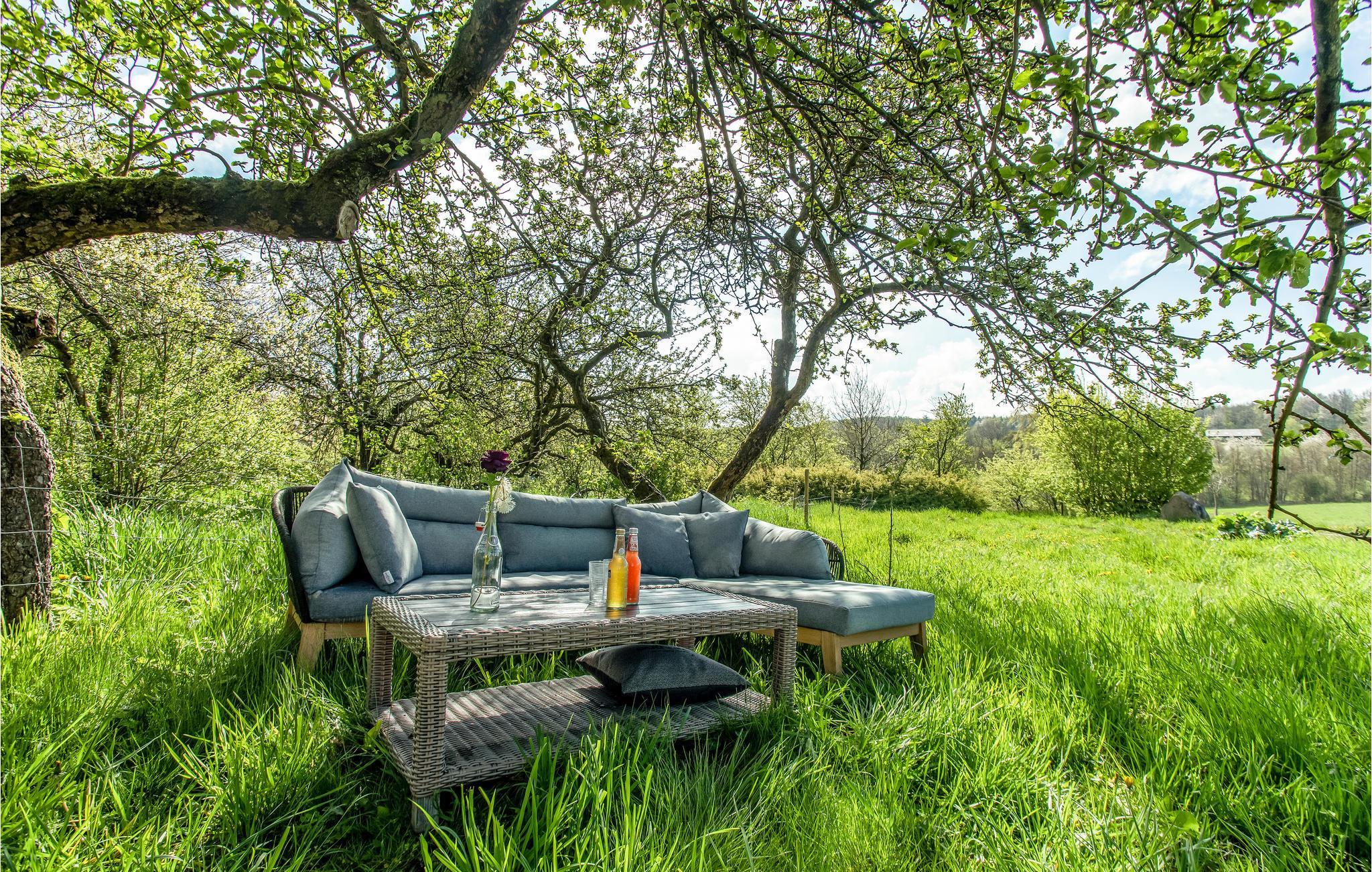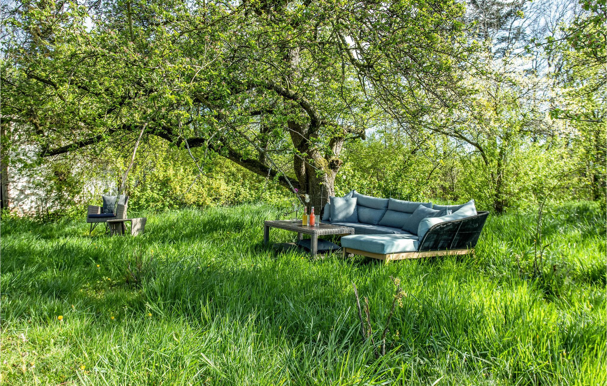 Das auf einem offenen Grundstück gelegene Haus liegt dicht am Wald und bietet Ihnen eine wunderbare Aussicht über die Landschaft. Auf dem Grundstück gibt es große Obstbäume, an denen Sie sich nach Belieben bedienen können, und auch den Tieren, die auf den angrenzenden Feldern grasen, können Sie und Ihre Kinder ganz nah kommen.